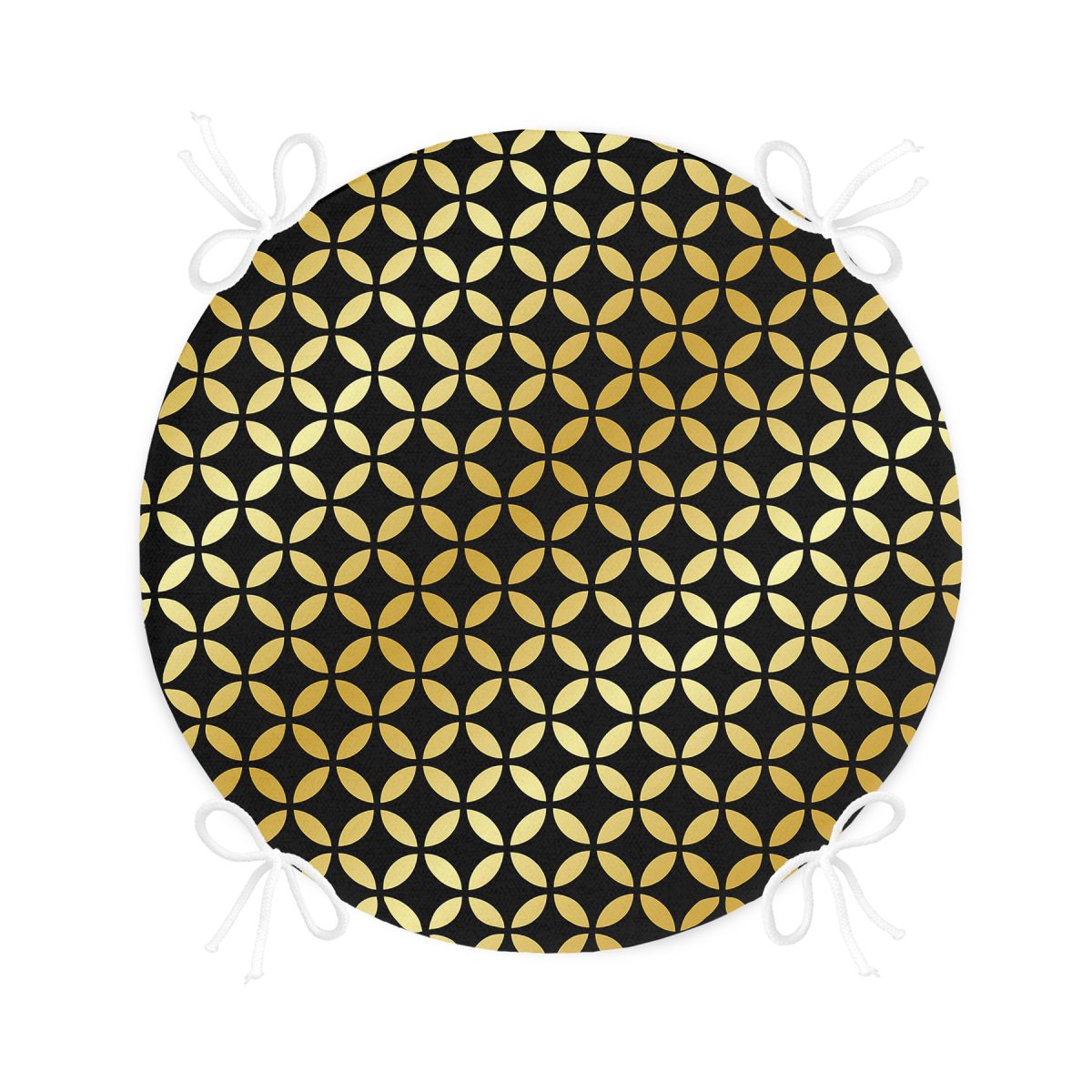 Siyah Zeminde Gold Geometrik Desenli Yuvarlak Fermuarlı Sandalye Minderi