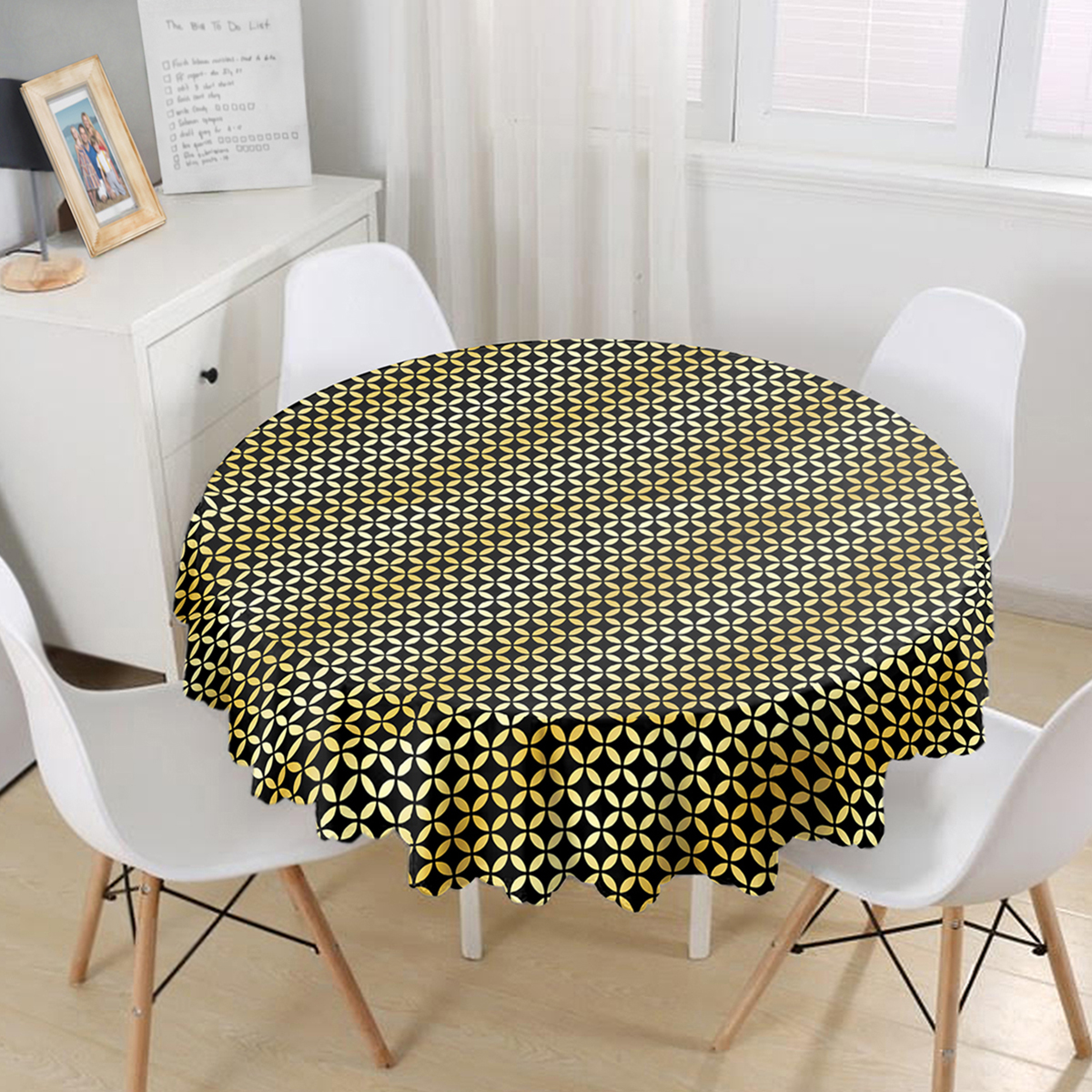 Siyah Zeminde Gold Geometrik Desenli Yuvarlak Masa Örtüsü - Çap 140cm Realhomes