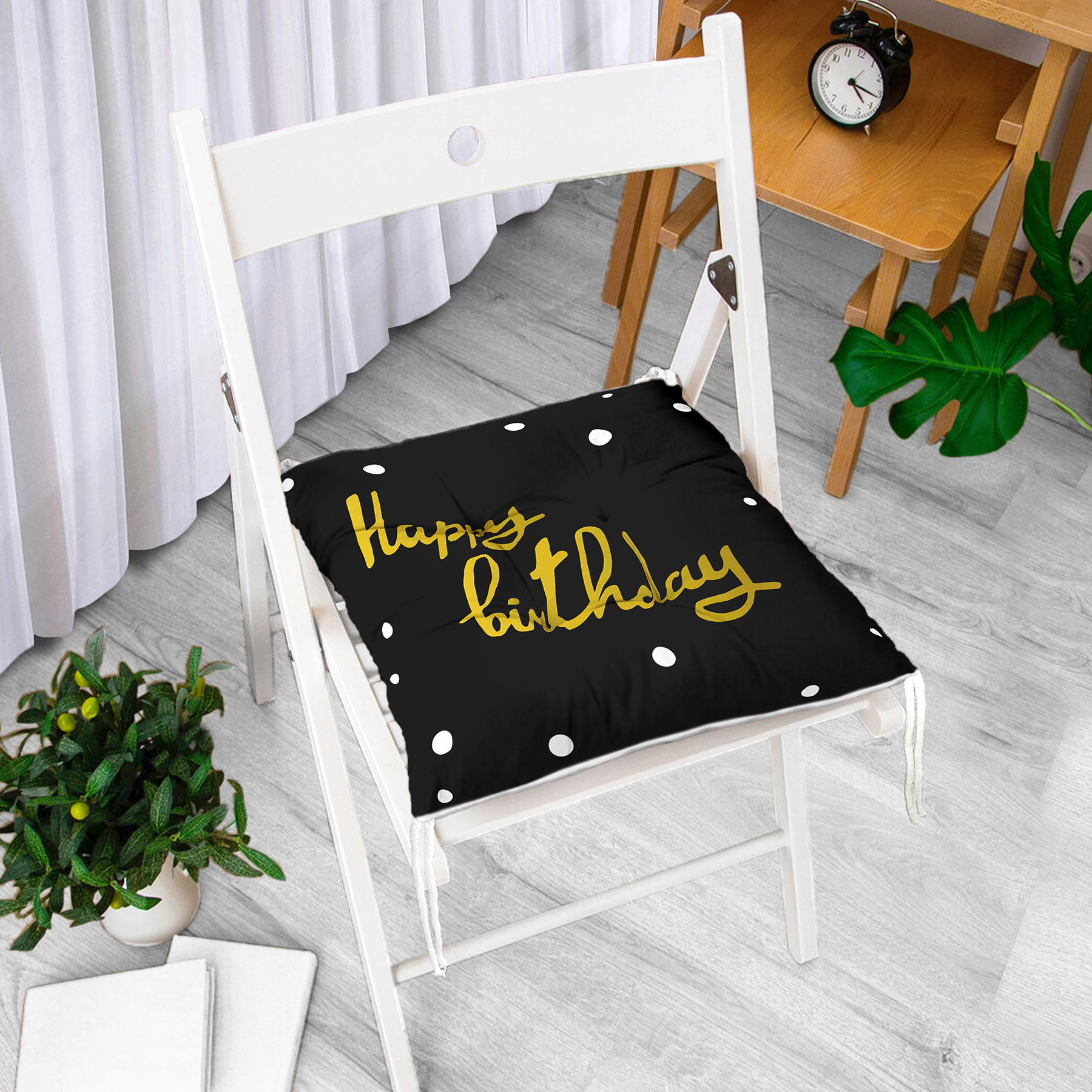 Siyah Zeminde Gold Yıldız Desenli Dijital Baskılı Modern Pofuduk Sandalye Minderi