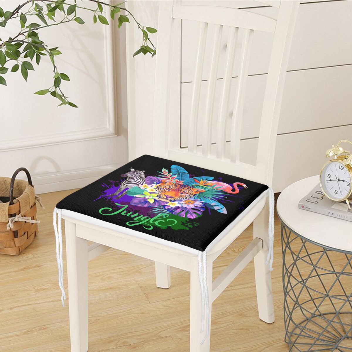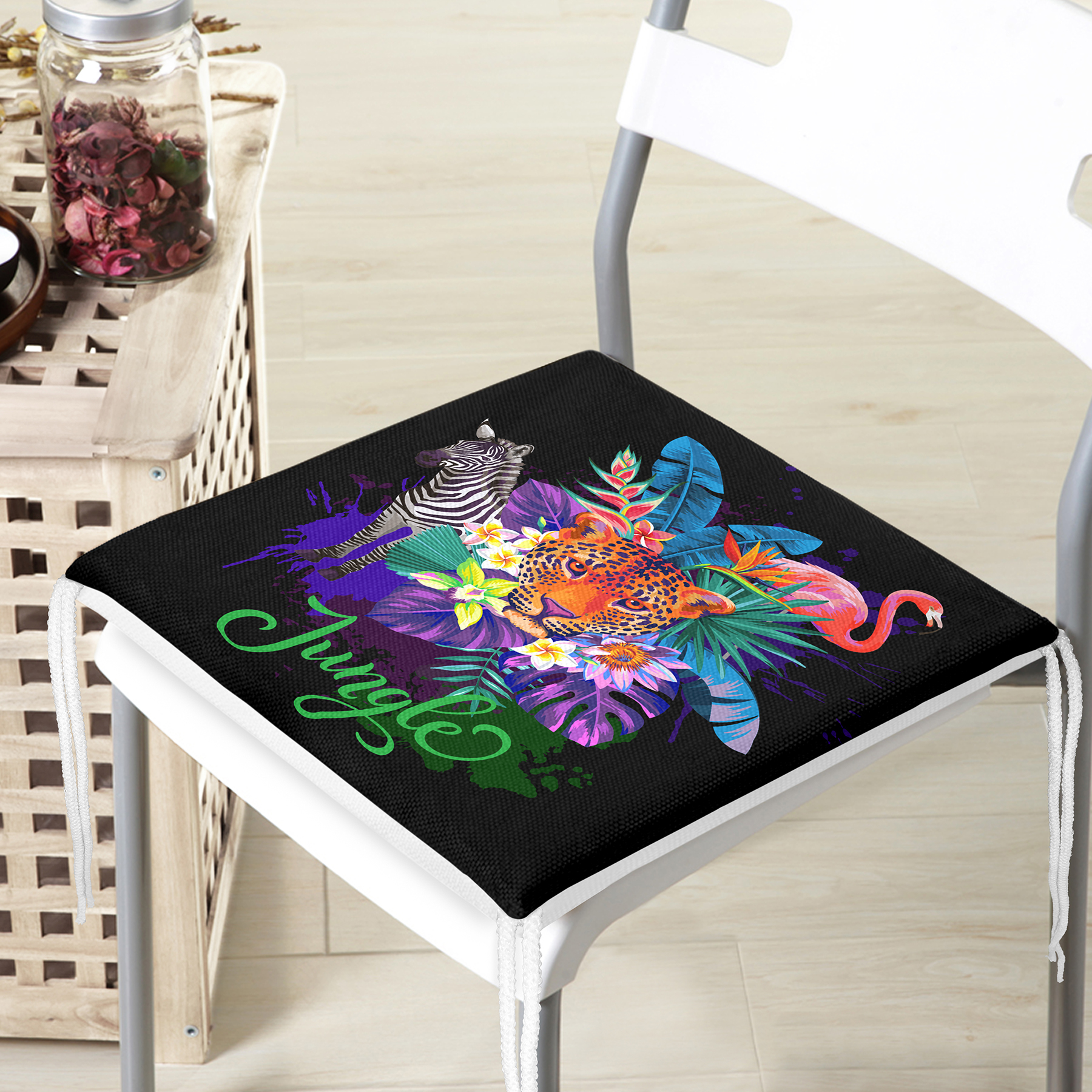 Siyah Zeminde Jungle Özel Tasarımlı Modern Fermuarlı Sandalye Minderi