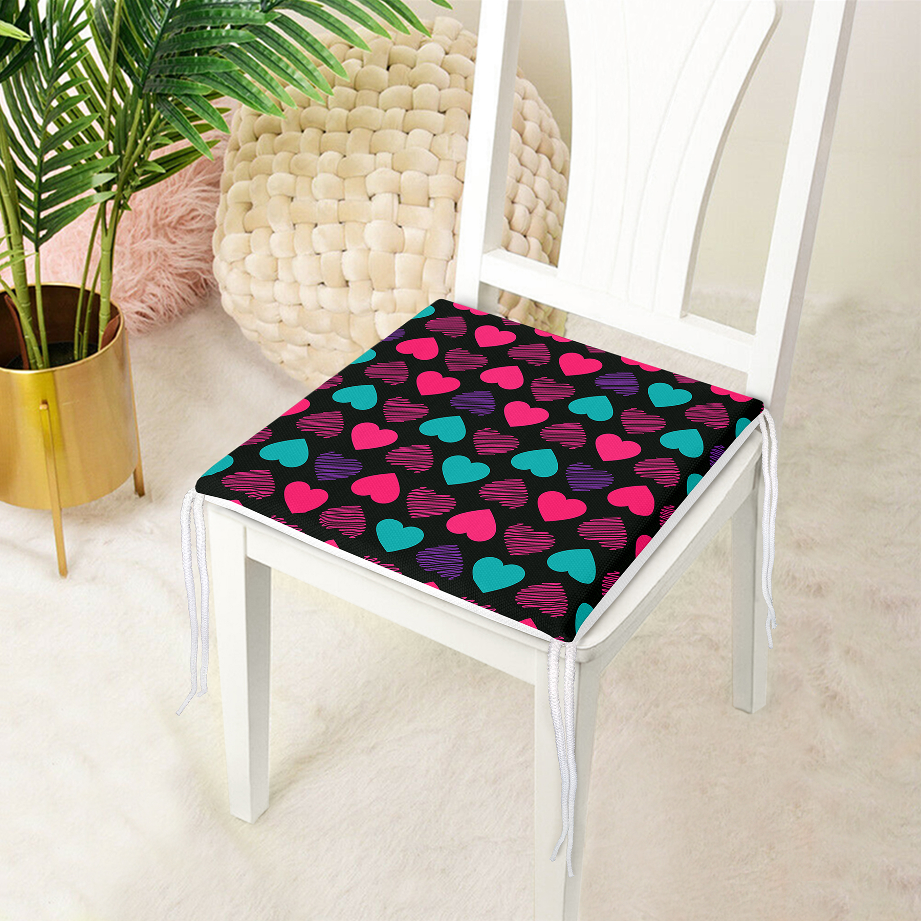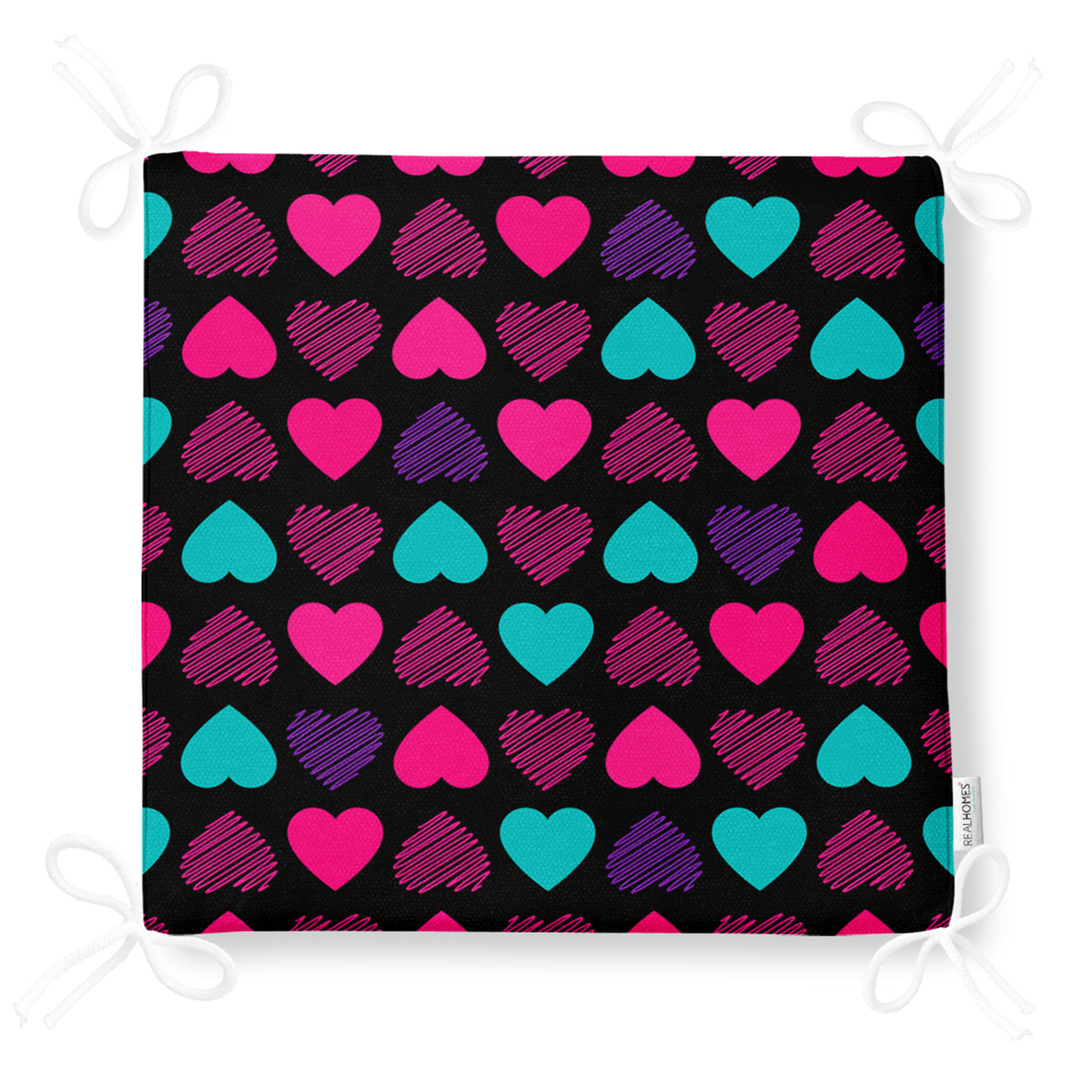 Siyah Zeminde Kalpler Özel Tasarımlı Dekoratif Fermuarlı Sandalye Minderi Realhomes