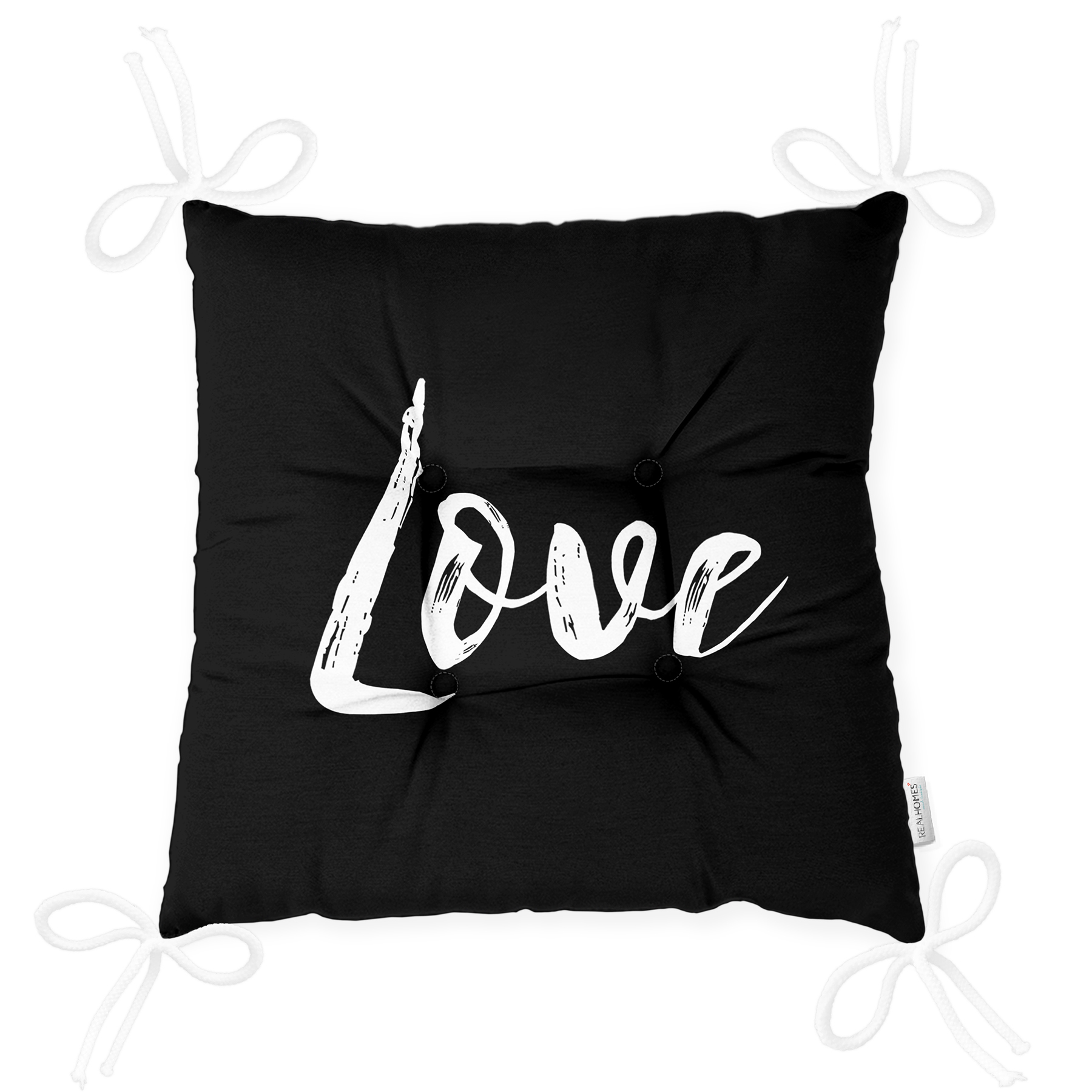 Siyah Zeminde Love Yazılı Modern Pofuduk Sandalye Minderi Realhomes