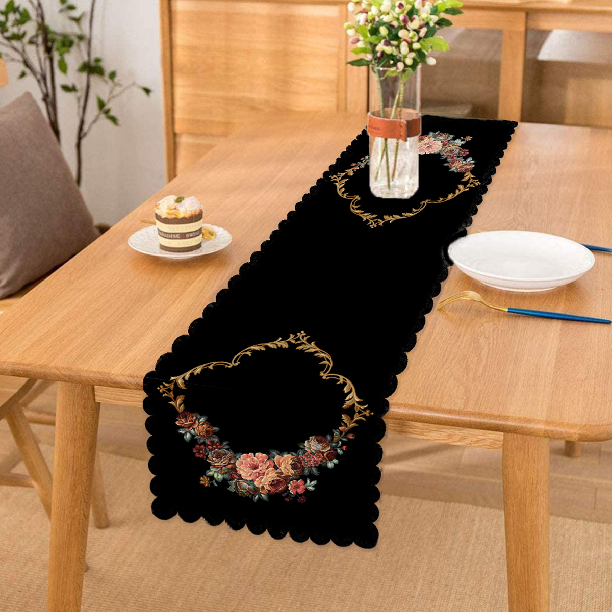 Siyah Zeminde Otantik Çiçekler Özel Tasarım Runner