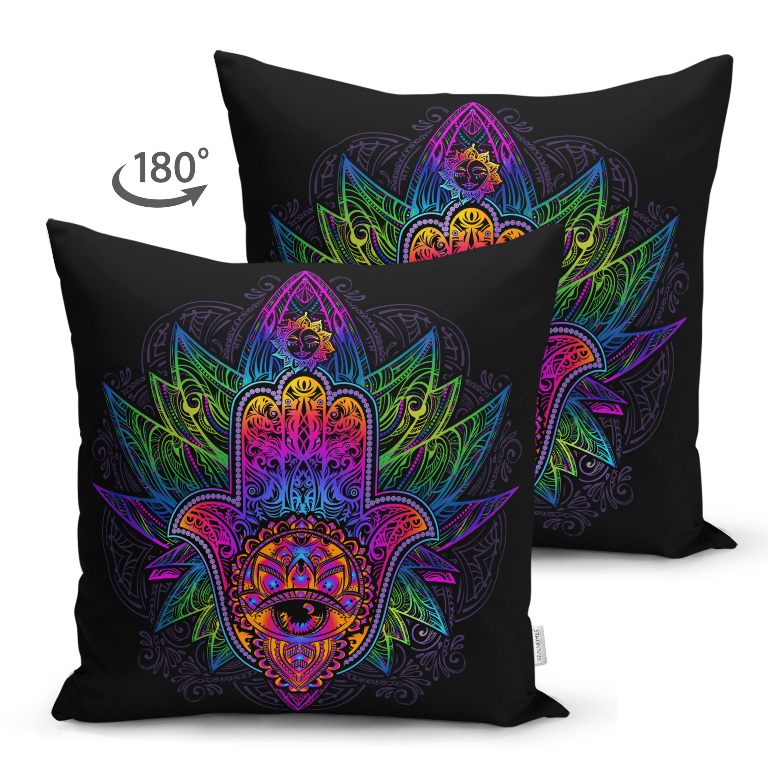 Siyah Zeminde Renkli Fâtımâ'nın Eli Desenli Çift Taraflı Süet Kırlent Kılıfı Realhomes