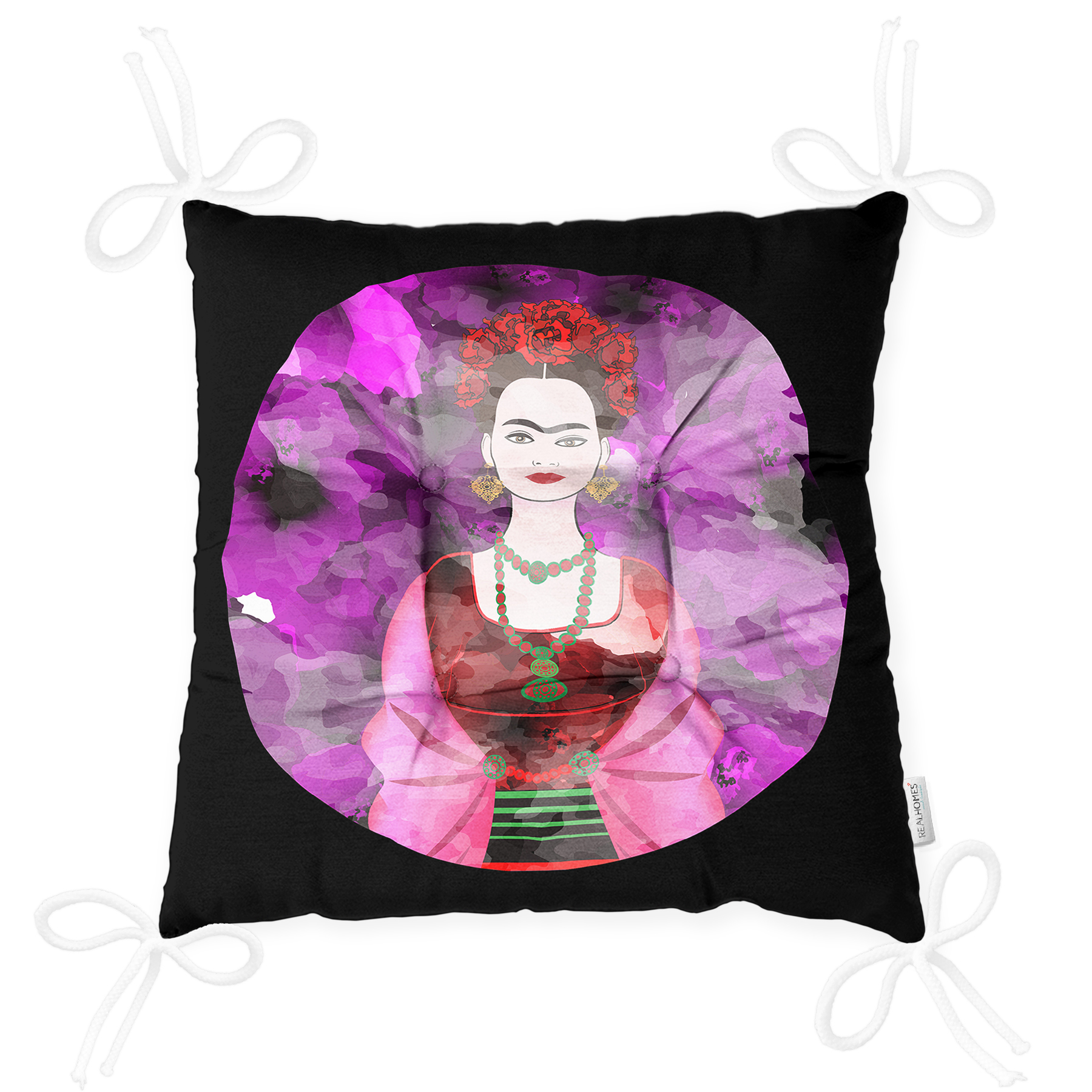 Siyah Zeminde Renkli Frida Desenli Pofuduk Sandalye Minderi Realhomes