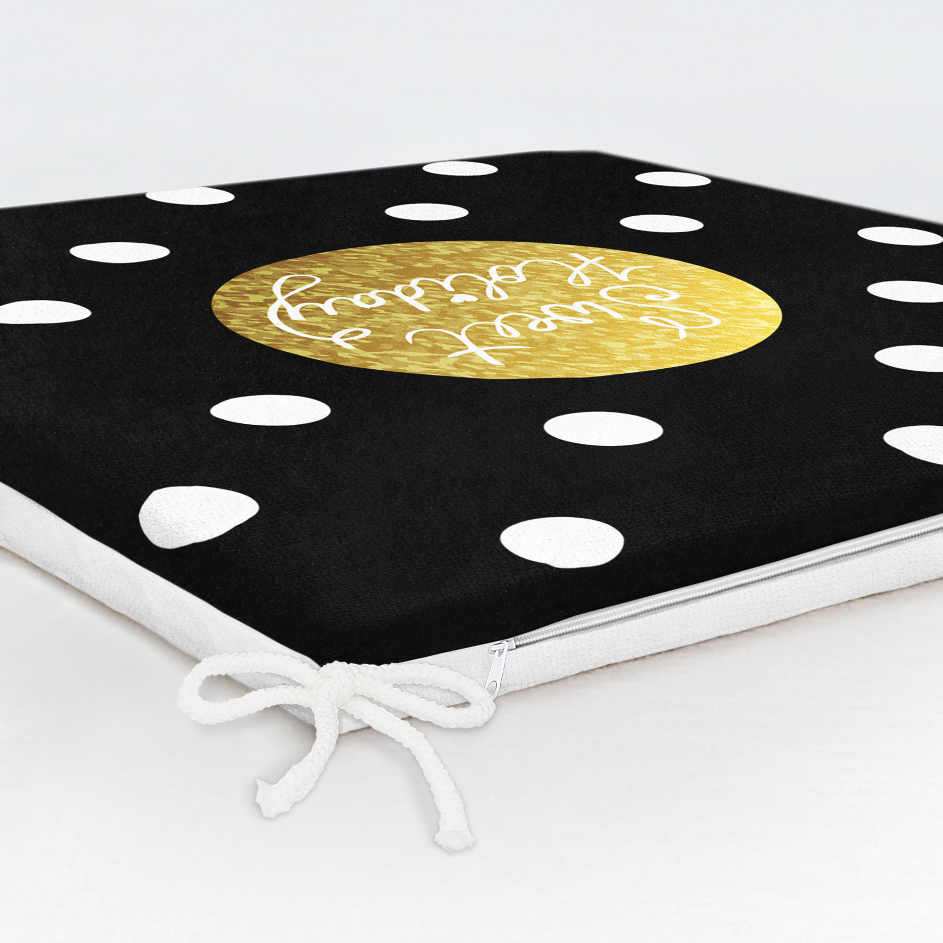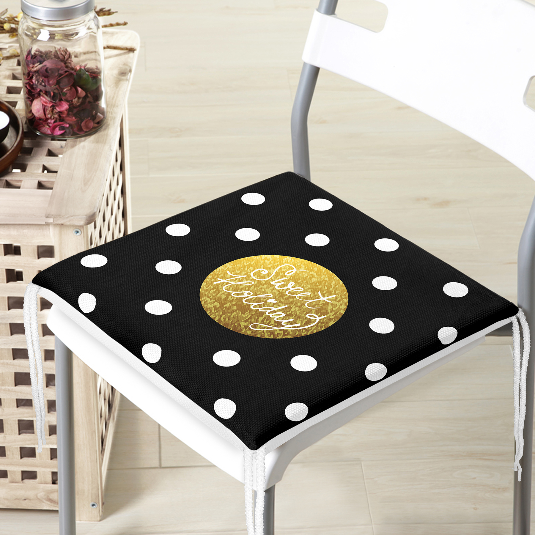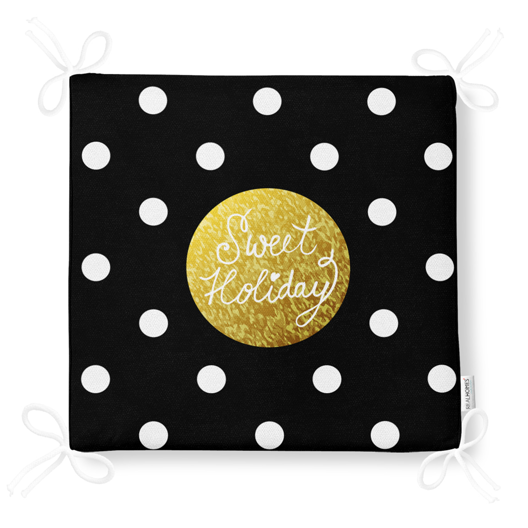 Siyah Zeminde Sweet Holiday Tasarımlı Dijital Baskılı Fermuarlı Sandalye Minderi