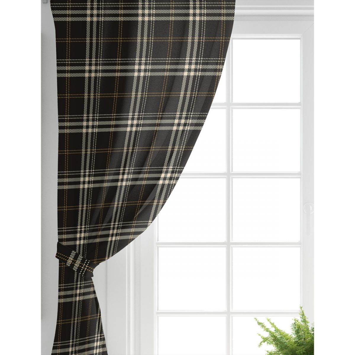 Siyah Zeminli Ekose Desenli Dijital Baskılı Salon Fon Perde