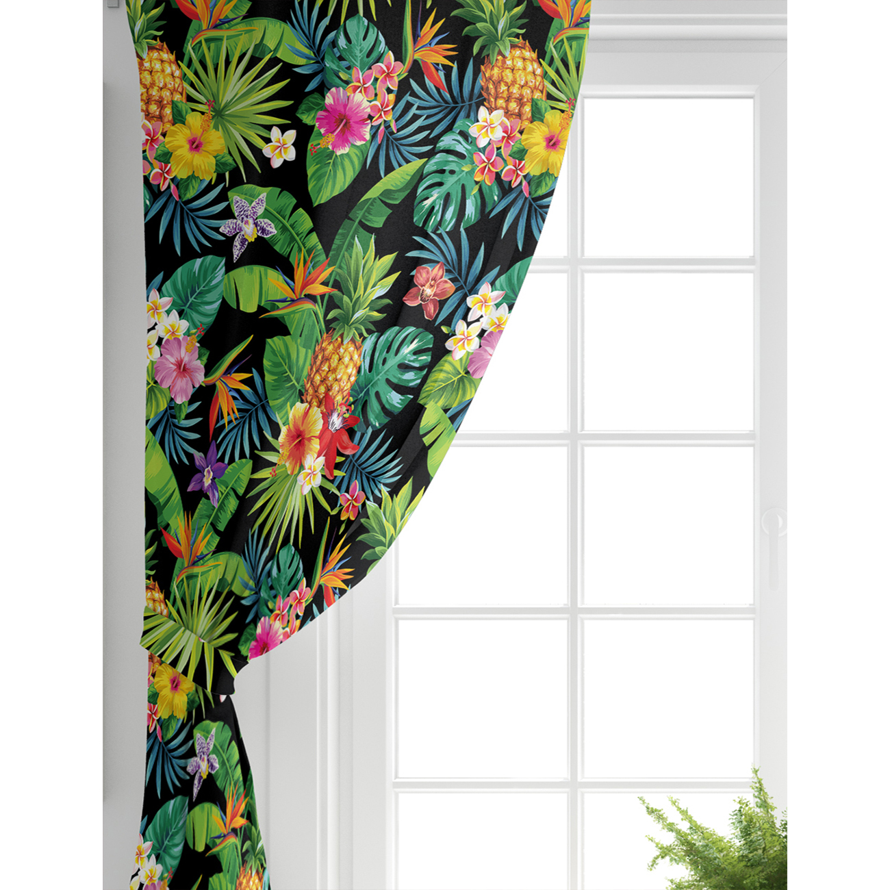 Siyah Zeminli Geometrik Yapraklar Desenli Salon Fon Perde
