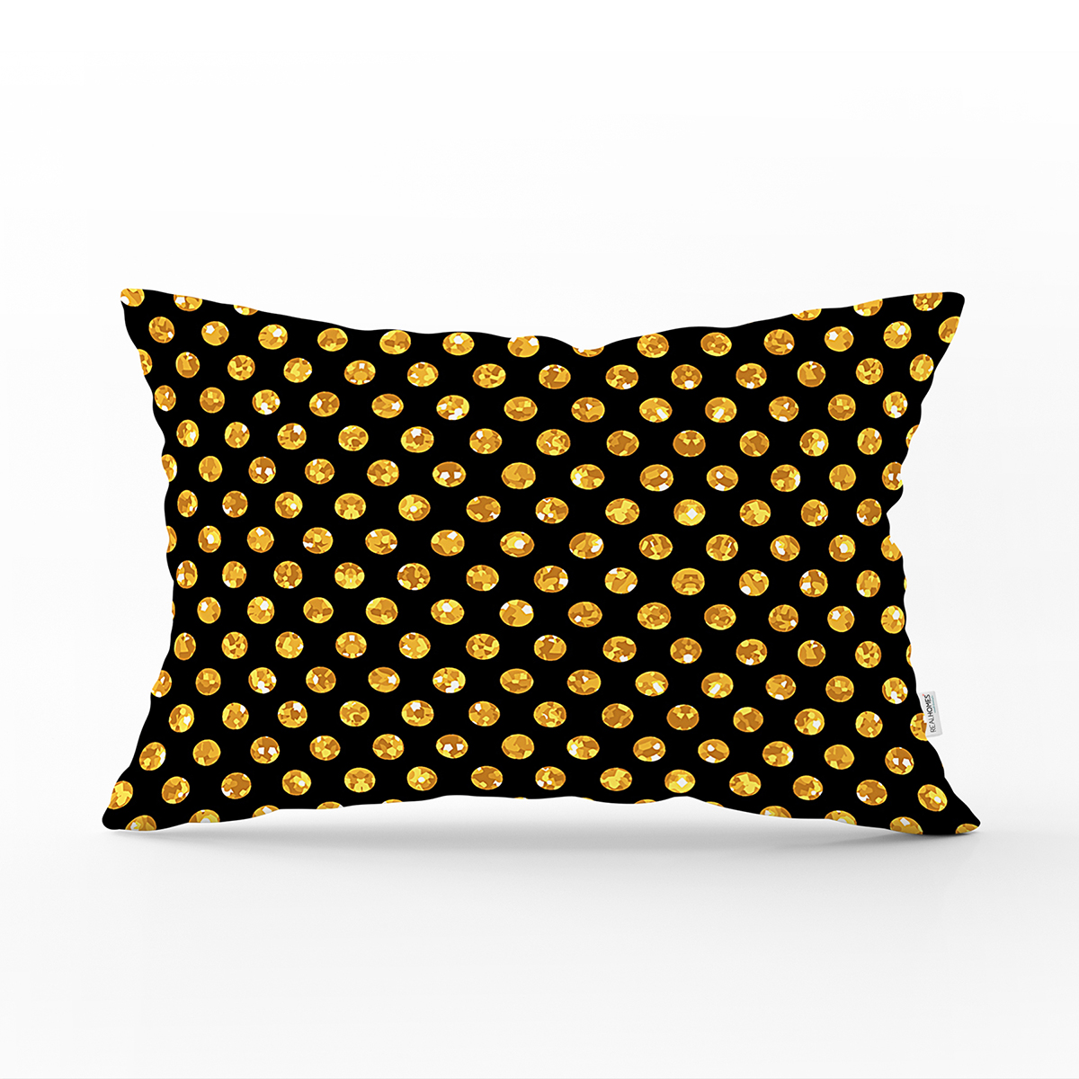Siyah Zeminli Gold Renkli Puantiyeli Dijital Baskılı Modern Dikdörtgen Yastık Kırlent Kılıfı