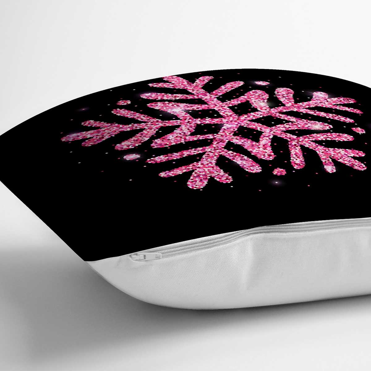 Siyah Zeminli Pembe Renkli Kartanesi Desenli Dijital Baskılı Modern Kırlent Kılıfı Realhomes