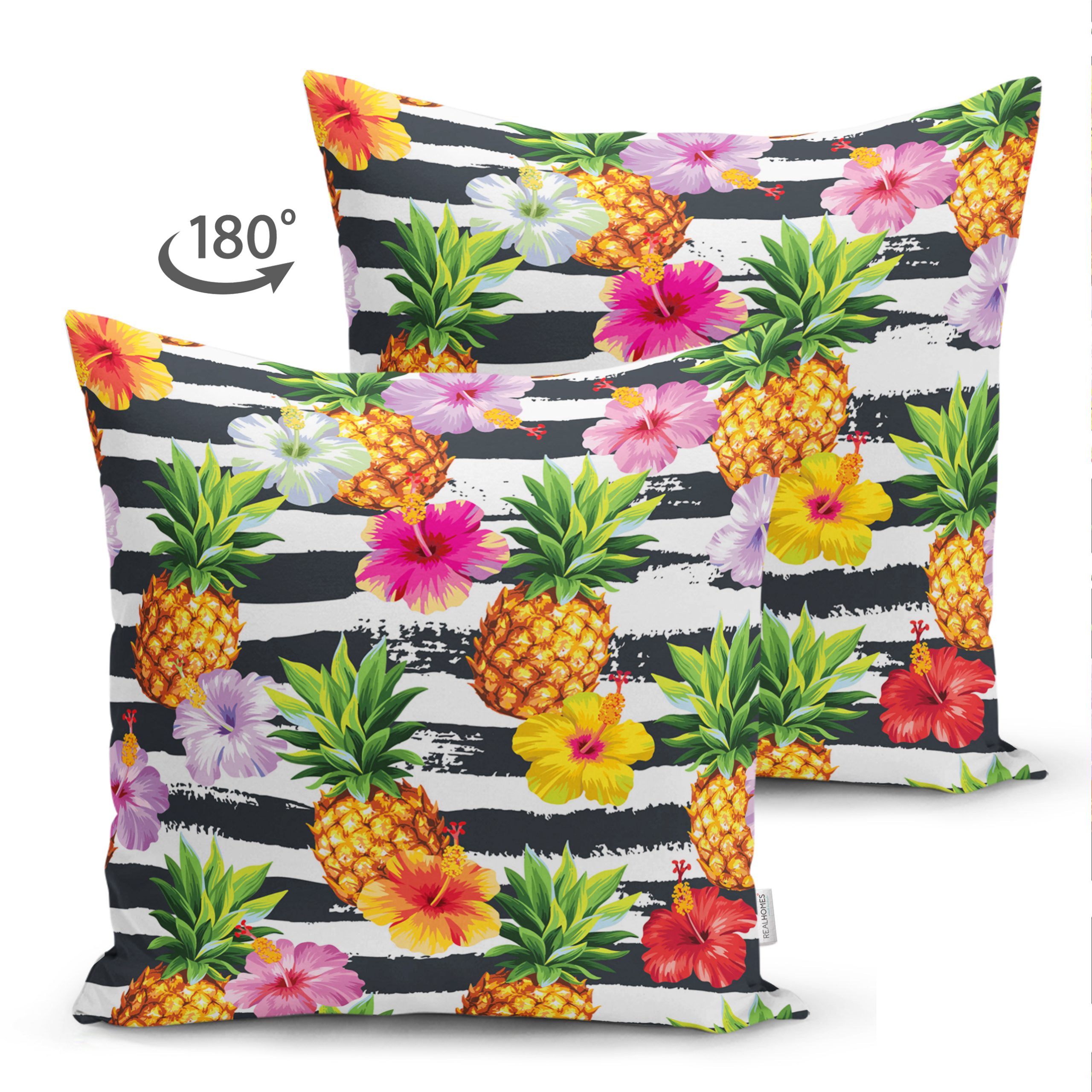 Siyah Zeminli Renkli Ananaslar Çift Taraflı Özel Tasarım Süet Yastık Kırlent Kılıfı Realhomes