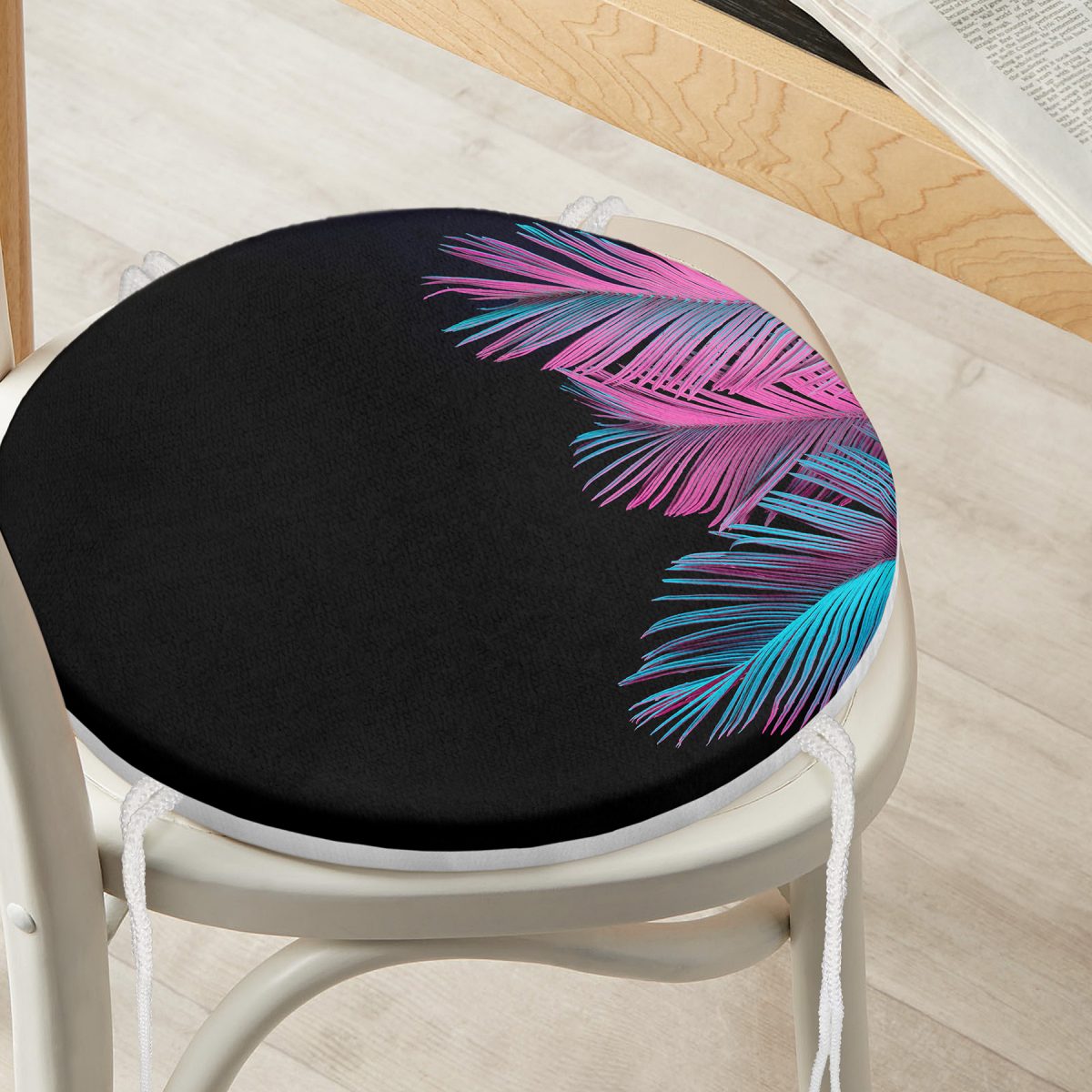 Siyah Zeminli Tropik Yapraklı Özel Tasarım Yuvarlak Fermuarlı Sandalye Minderi