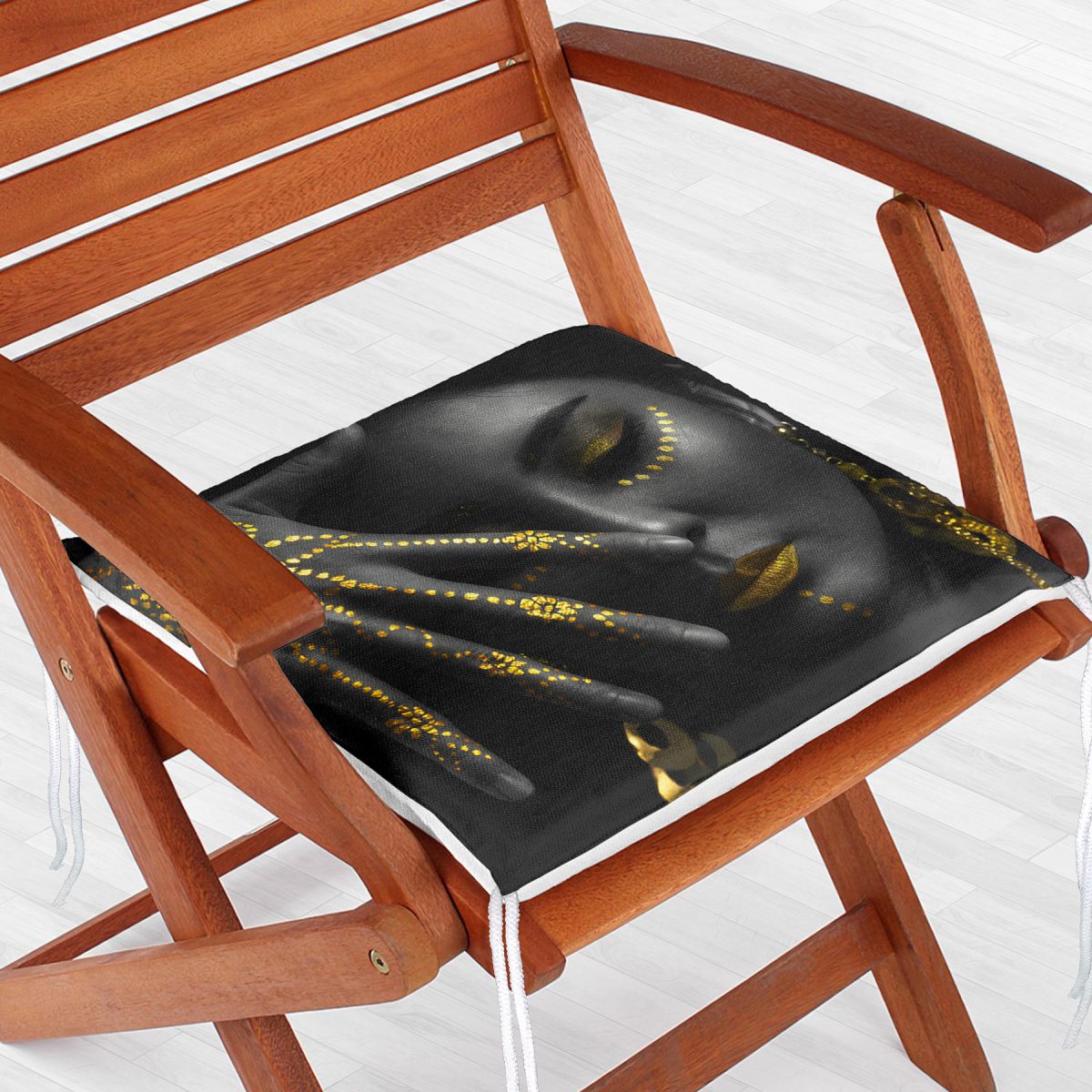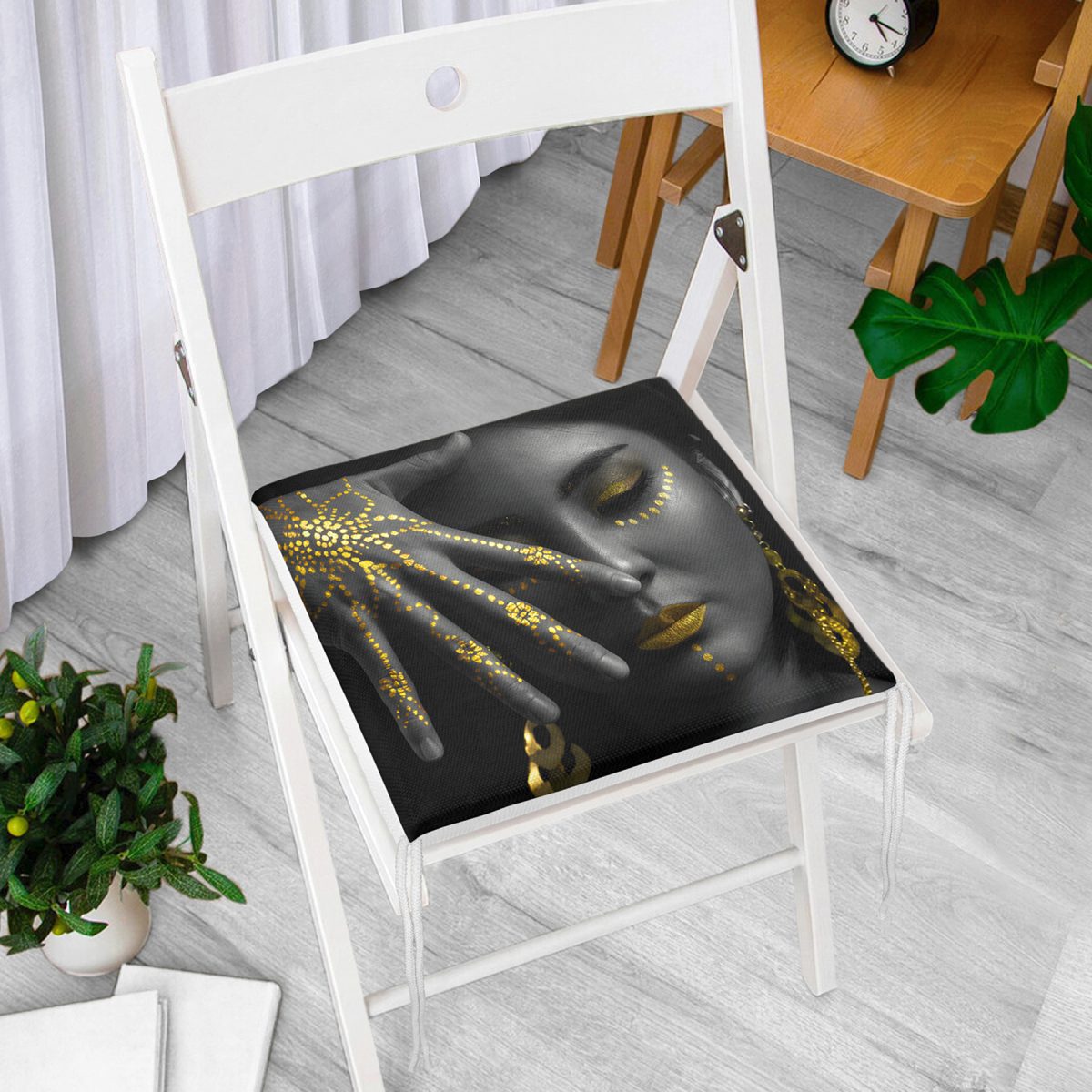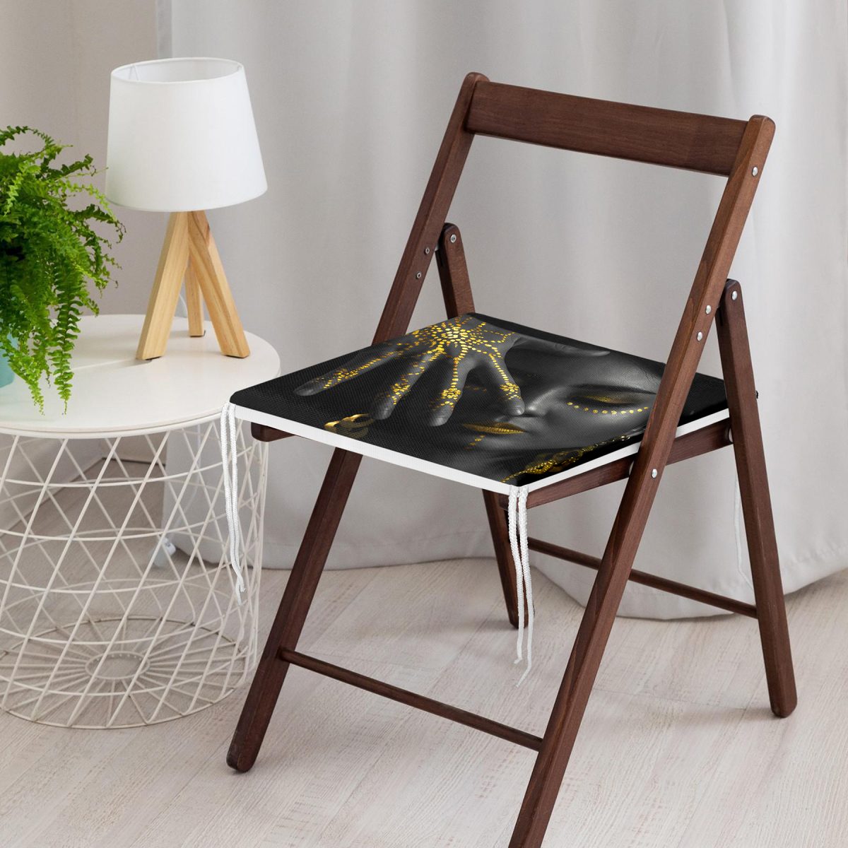 Siyahi Kadın Tasarımlı 3D Dijital Baskılı Modern Fermuarlı Sandalye Minderi