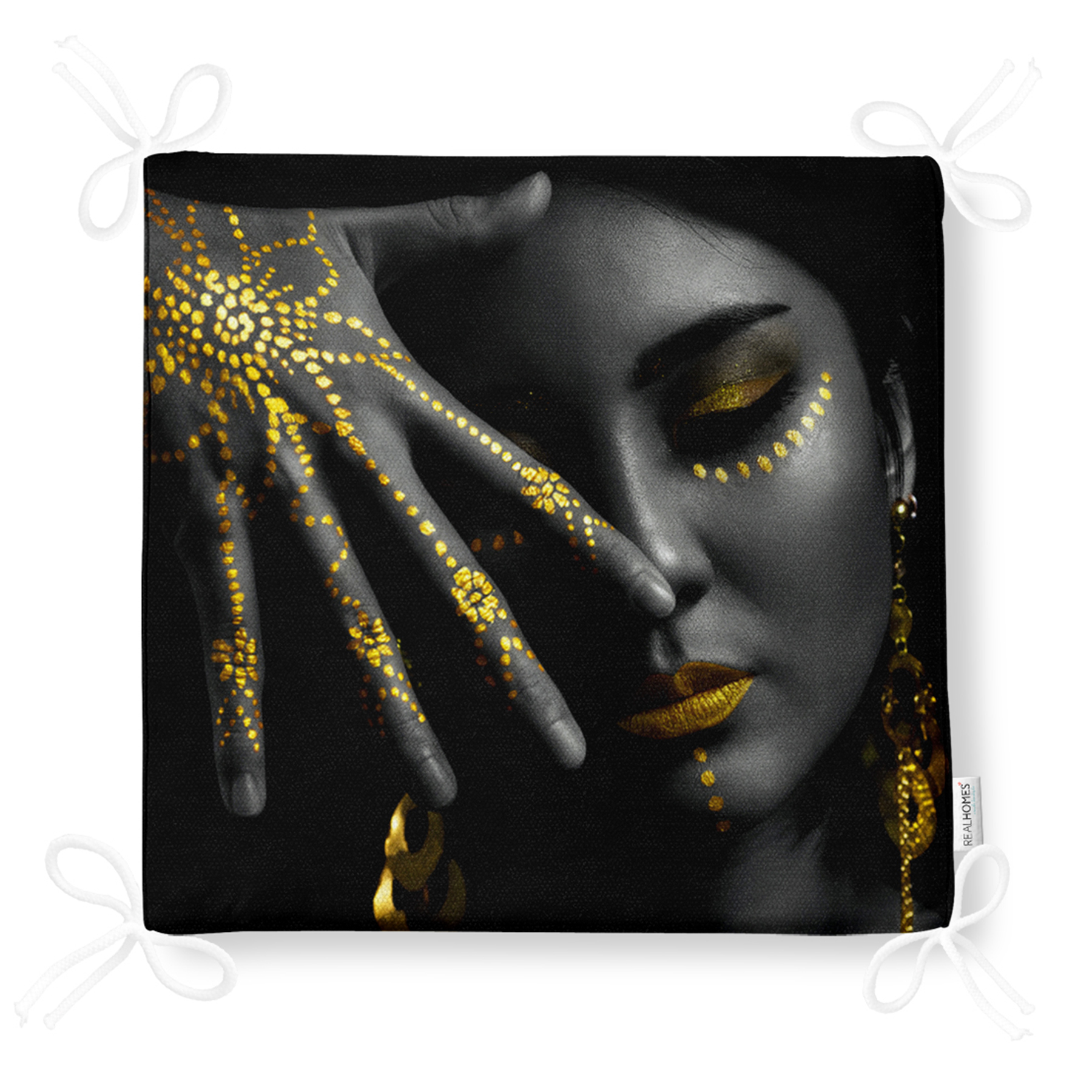 Siyahi Kadın Tasarımlı 3D Dijital Baskılı Modern Fermuarlı Sandalye Minderi Realhomes