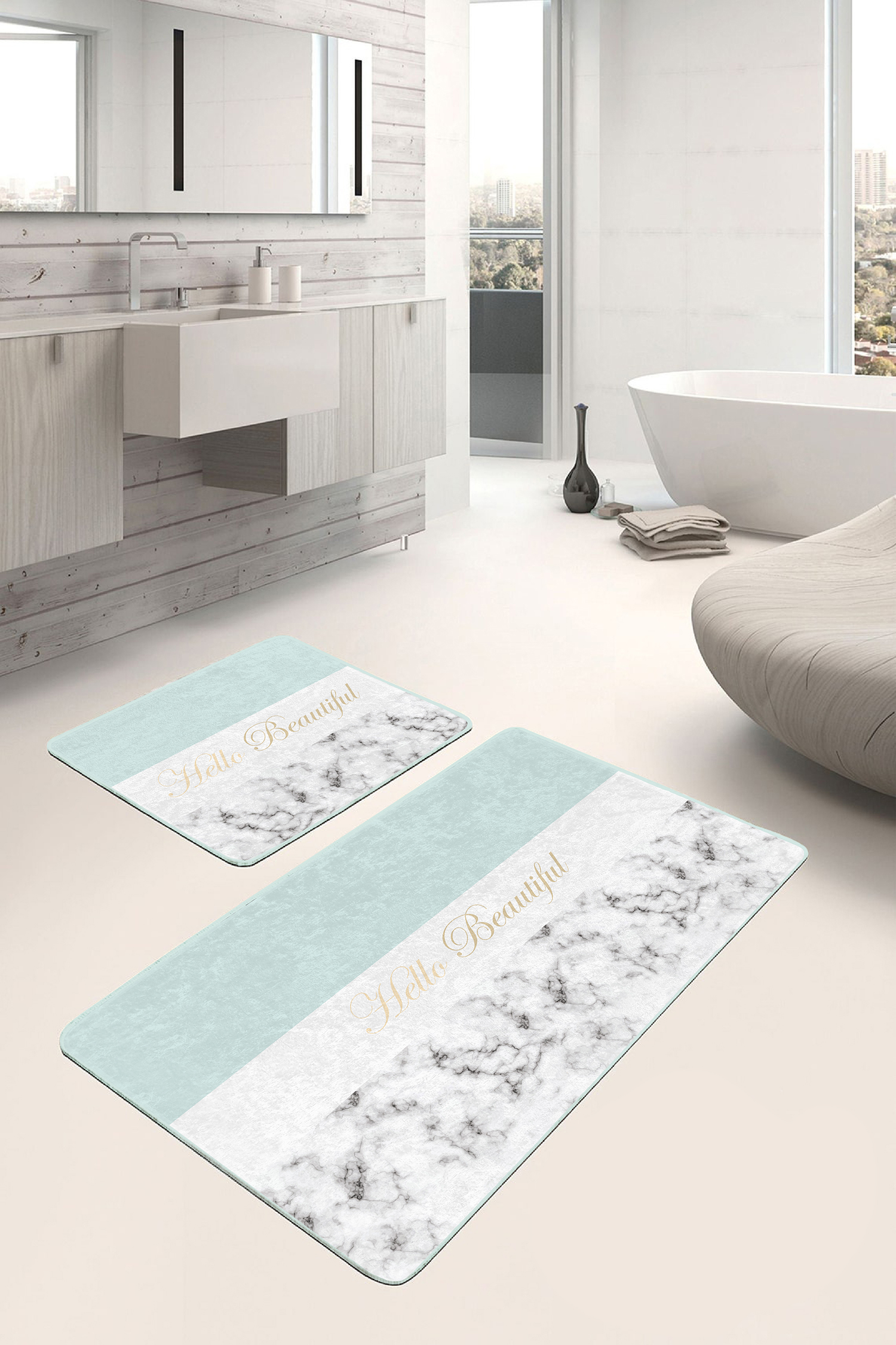 Soft Renkli Hello Beatiful Dijital Baskılı 2'li Kaymaz Tabanlı Banyo & Mutfak Paspas Takımı Realhomes