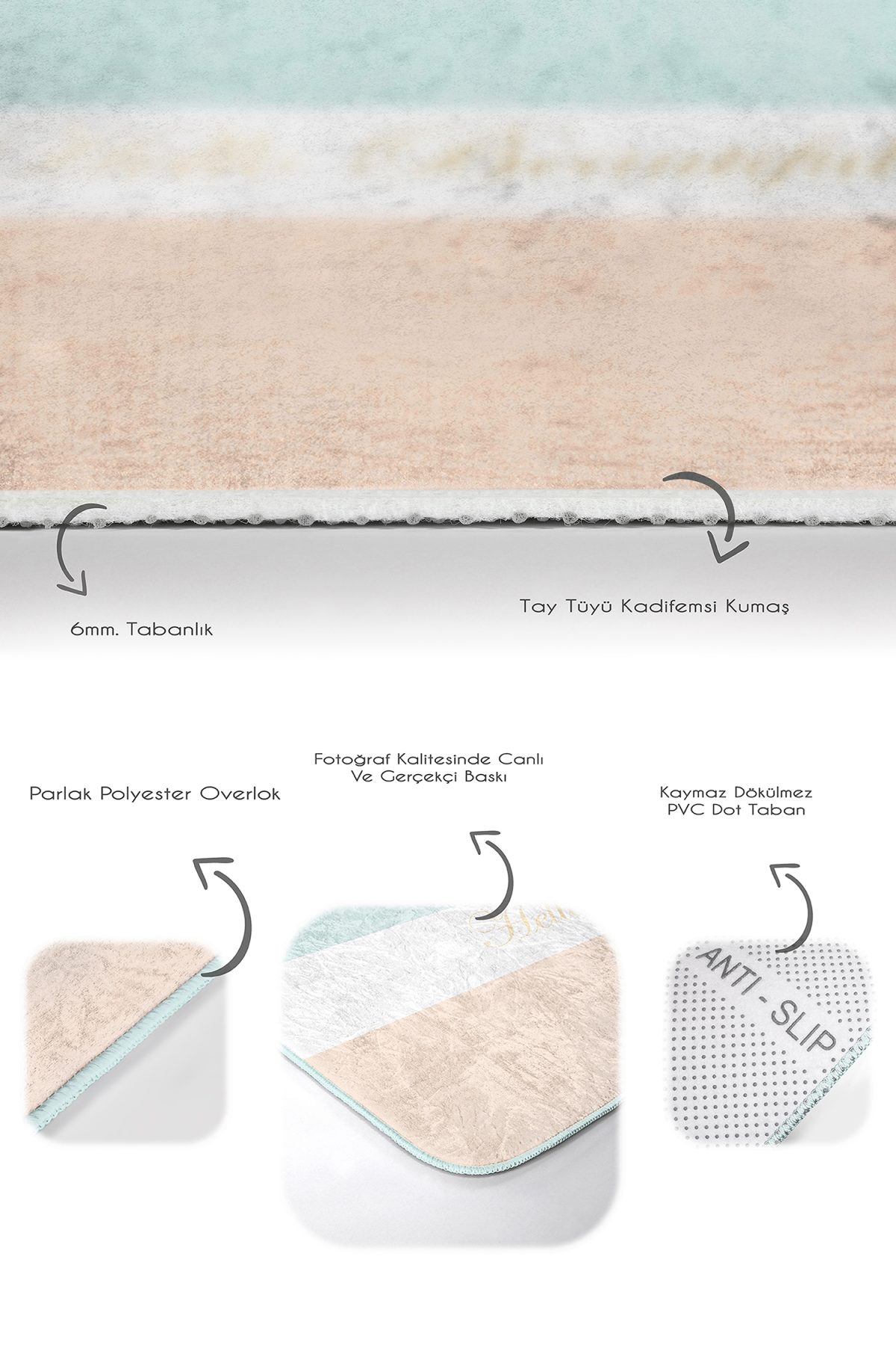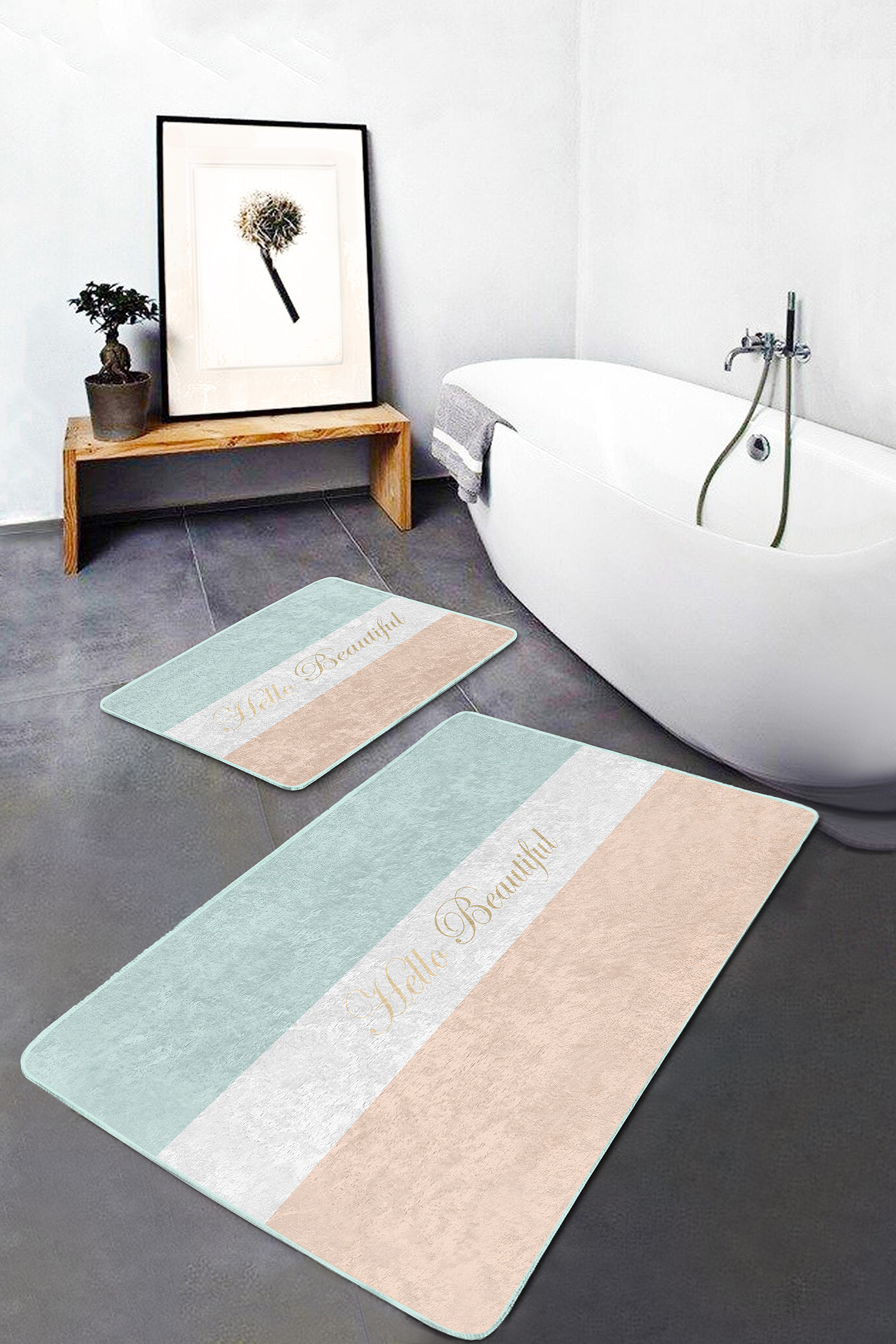 Soft Renkli Hello Beatiful Tasarımlı 2’li Kaymaz Tabanlı Banyo & Mutfak Paspas Takımı