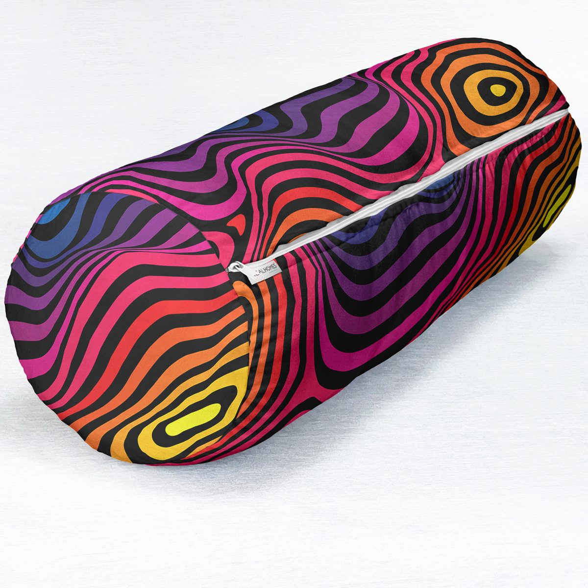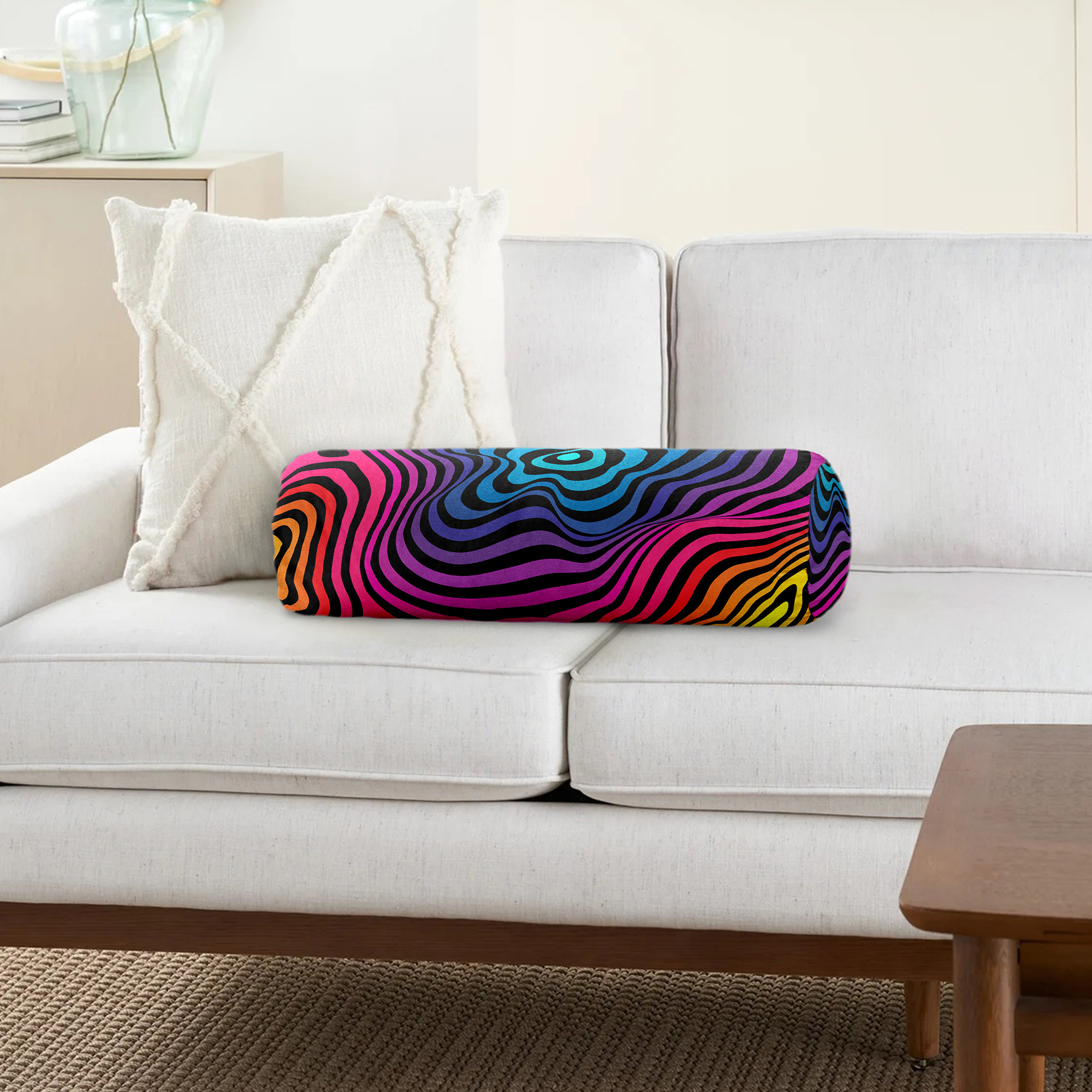 Soyut Karmaşık Motifli Özel Tasarım Dijital Baskılı Modern İç Dolgulu – Fermuarlı Süet Silindir Rulo Yastık Kırlent