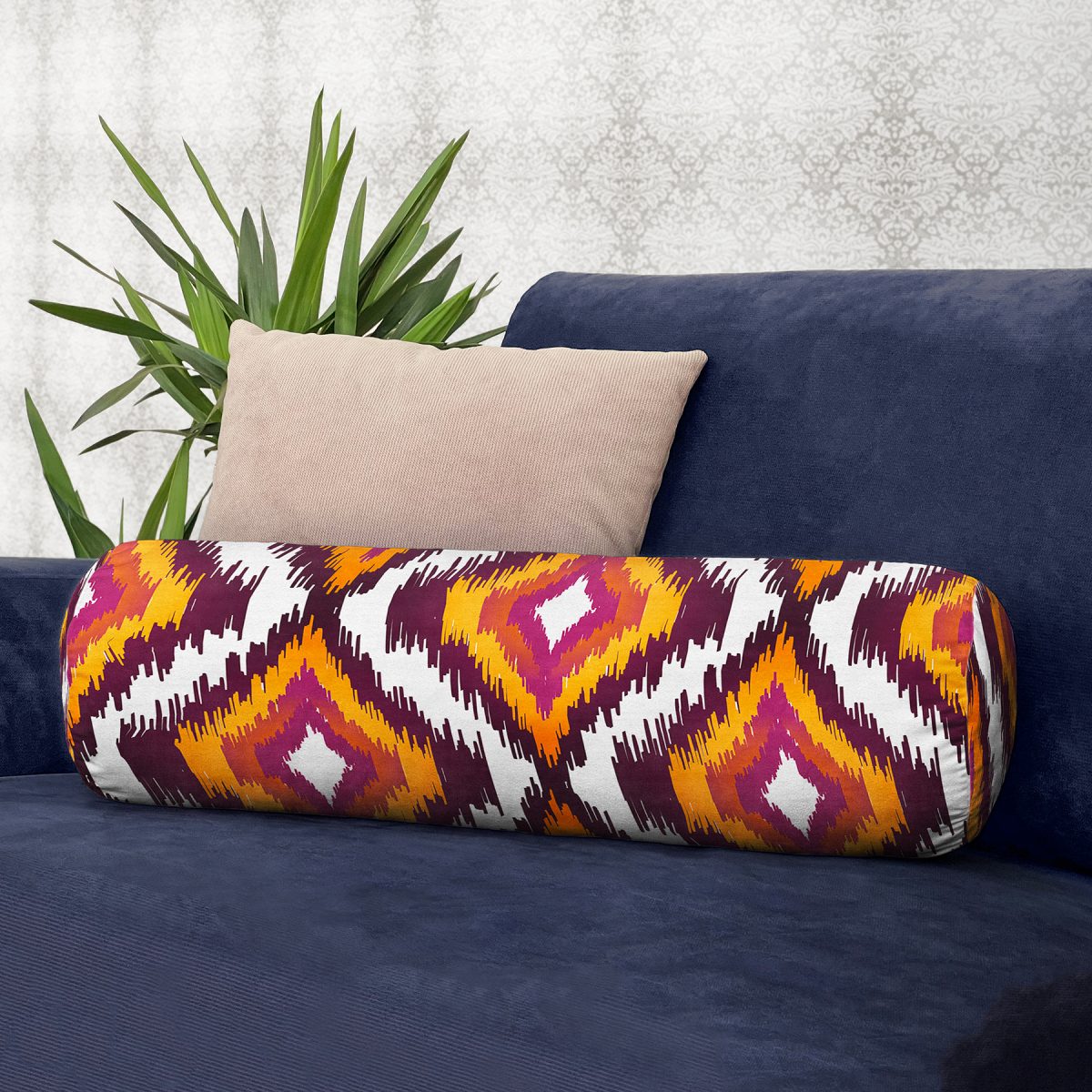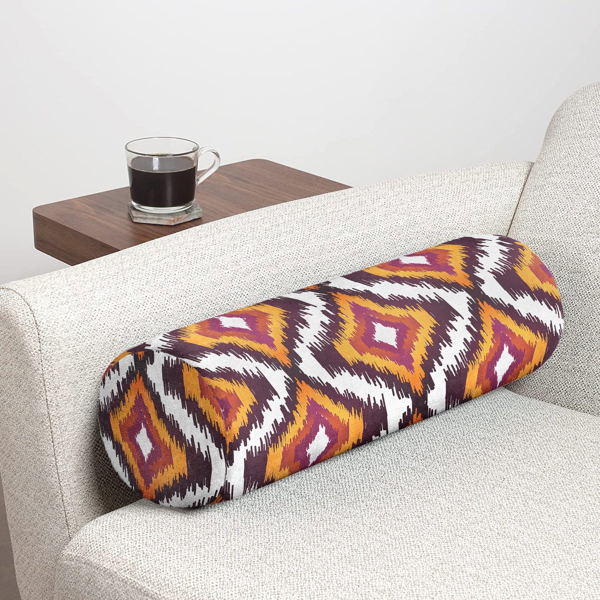 Soyut Renkler Etnik Tasarımlı Dijital Baskılı İç Dolgulu Süet Silindir Yastık Kırlent – Bel Yastığı