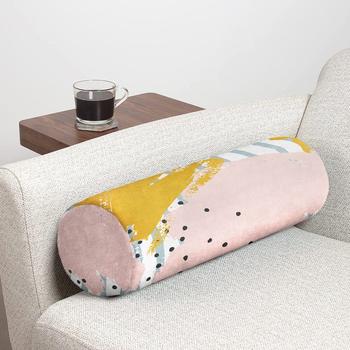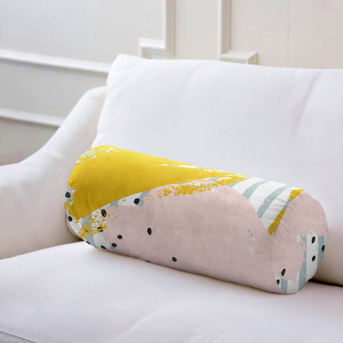 Soyut Sulu Boya Çizim Desenli Modern İç Dolgulu Süet Silindir Yastık Kırlent – Bel Yastığı