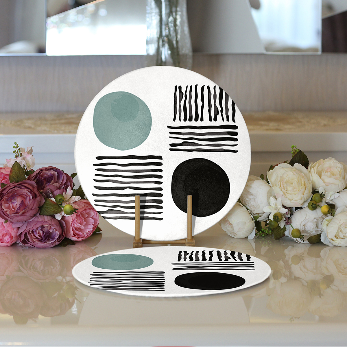 Soyut Tarzda Onedraw Çizimli Dijital Baskılı Modern 2'li Yuvarlak Servis Altlığı – Supla Realhomes