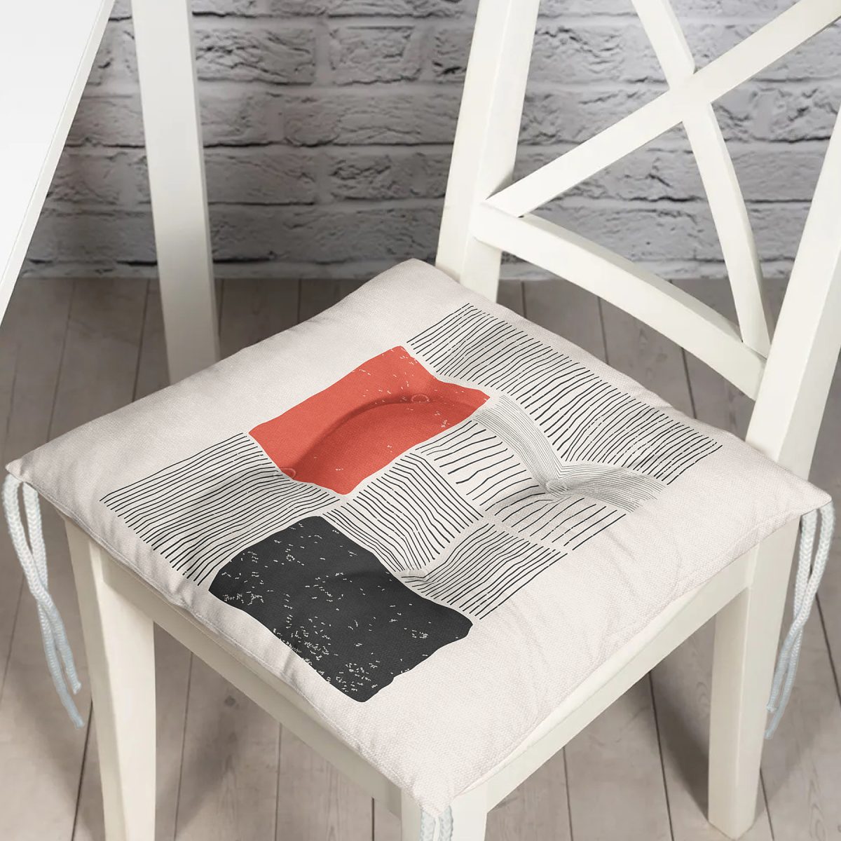 Soyut Tarzda Onedraw Çizimli Dijital Baskılı Modern Pofuduk Sandalye Minderi Realhomes