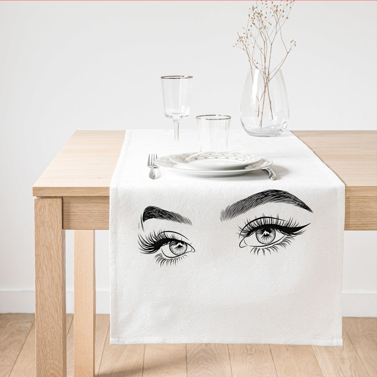Realhomes Beyaz Zeminde Kirpik Motifli Özel Tasarım Süet Runner Realhomes