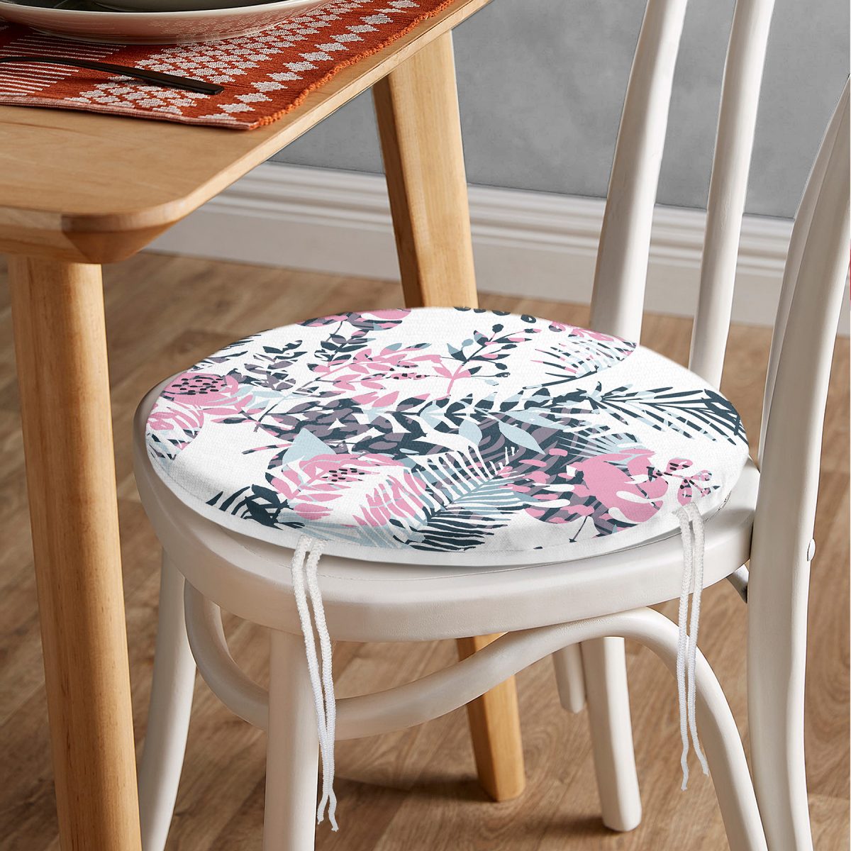 Sulu Boya Yaprak Motifli Modern Dijital Baskılı Yuvarlak Fermuarlı Sandalye Minderi