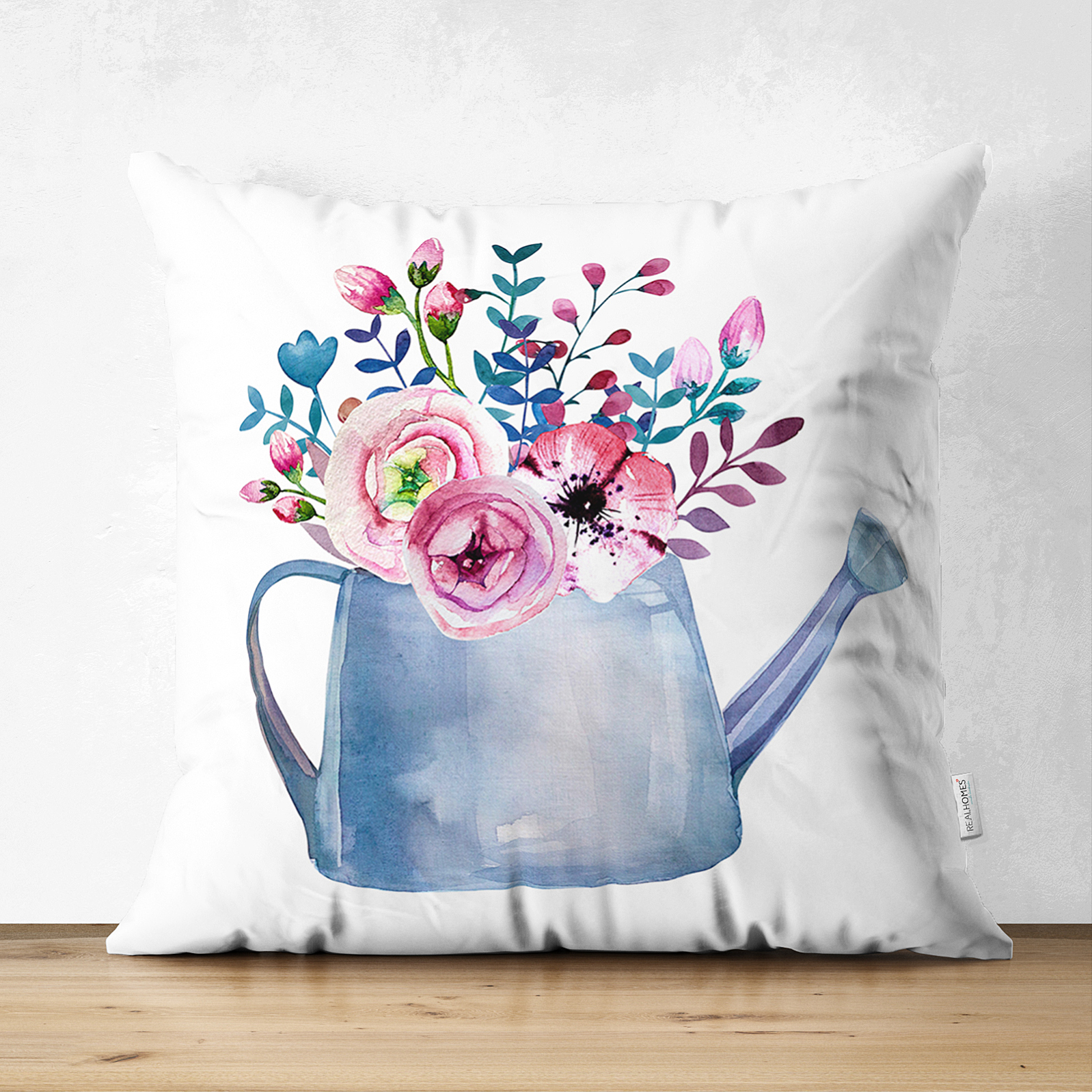 Sulu Boyalı Çiçek Desenli Çift Taraflı Dijital Baskılı Dekoratif Süet Kırlent Kılıfı Realhomes