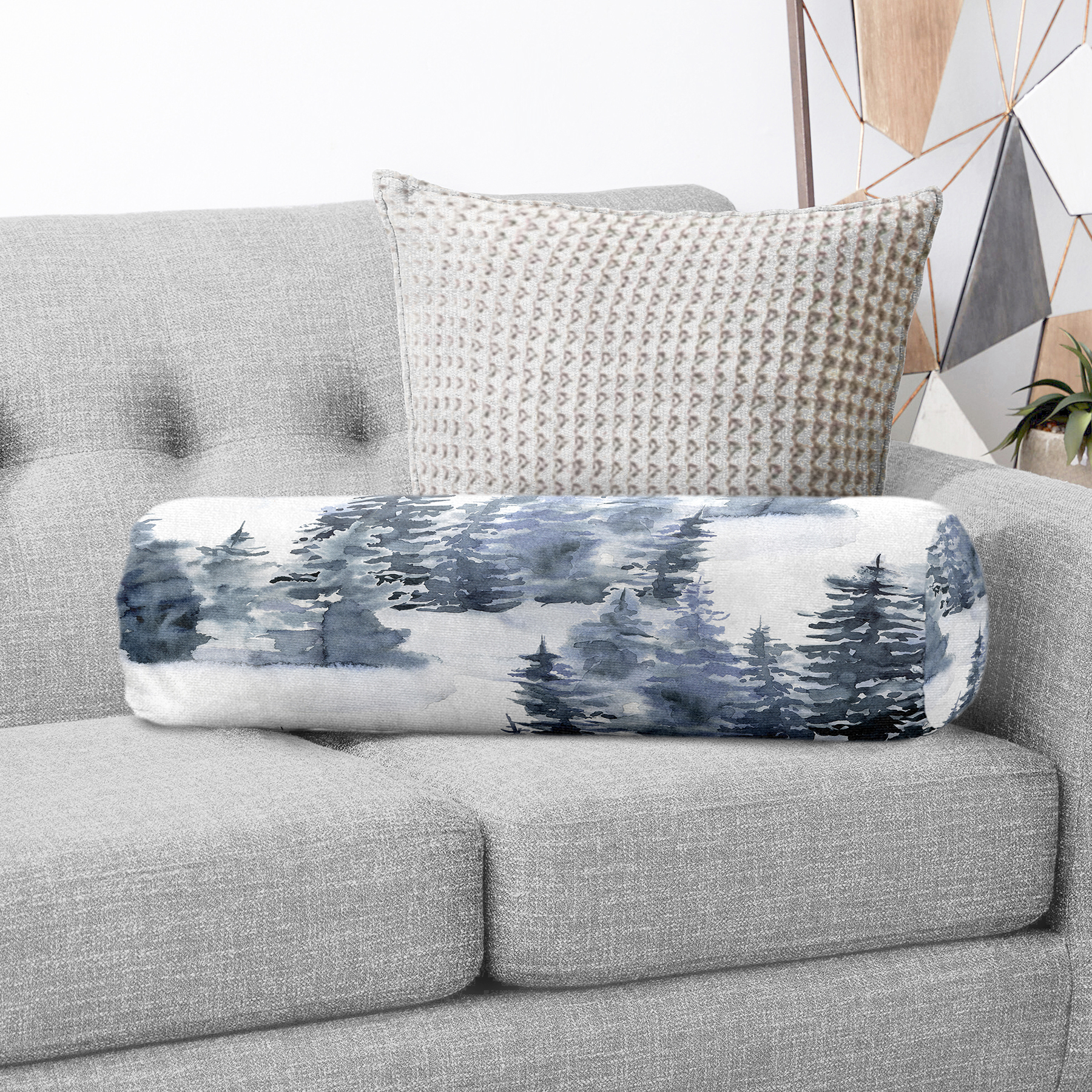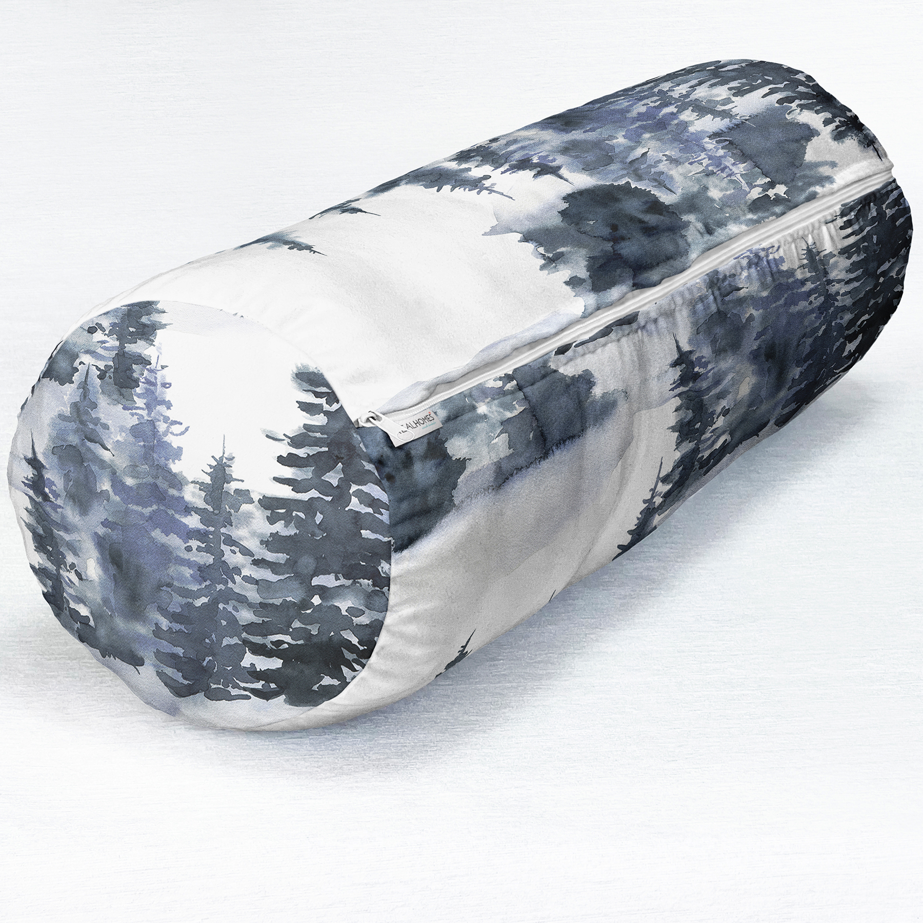 Suluboya Çizimli Kış Temalı Çam Ağaçları Dijital Baskılı Dekoratif İç Dolgulu Yumuşak Silindir Form Yastık Kırlent