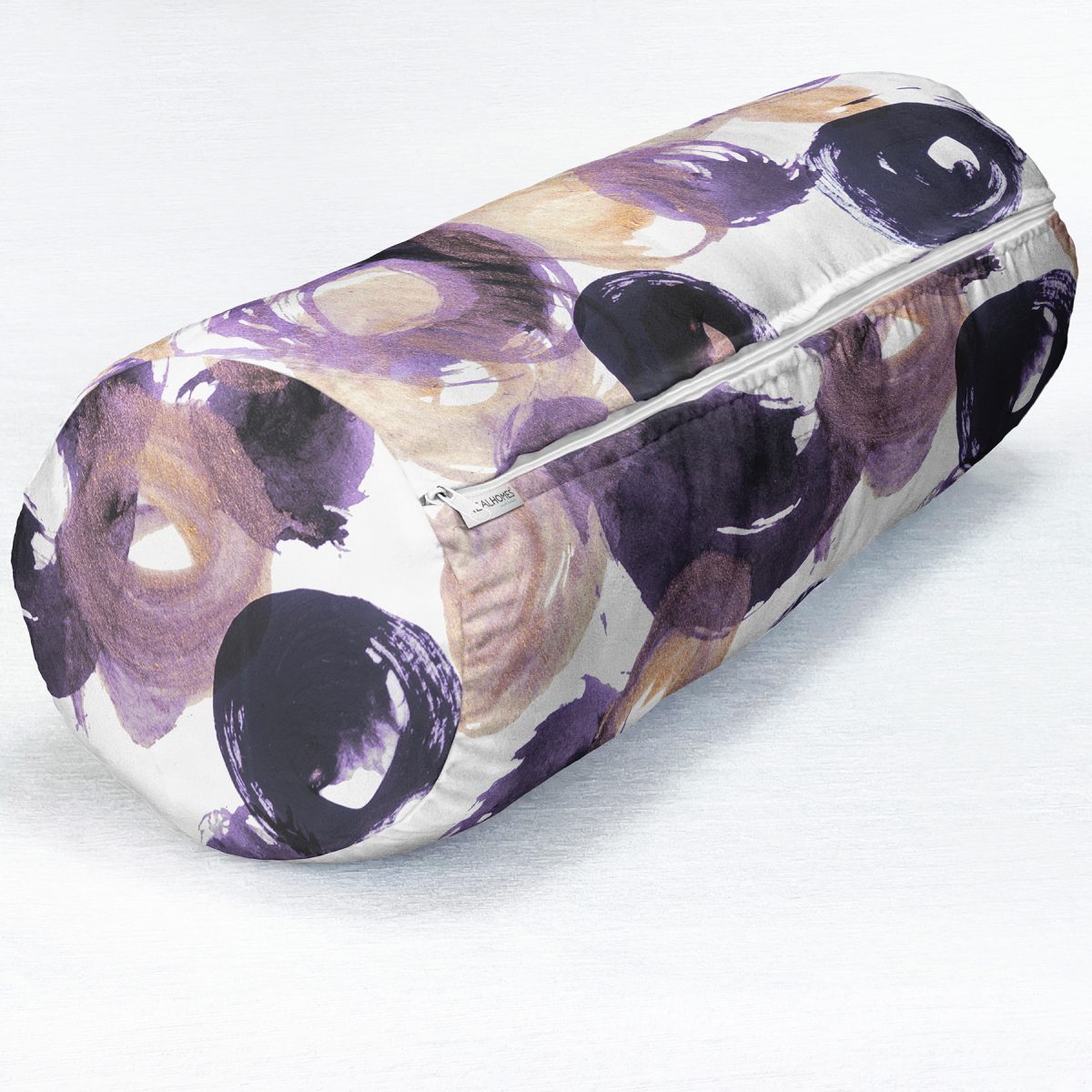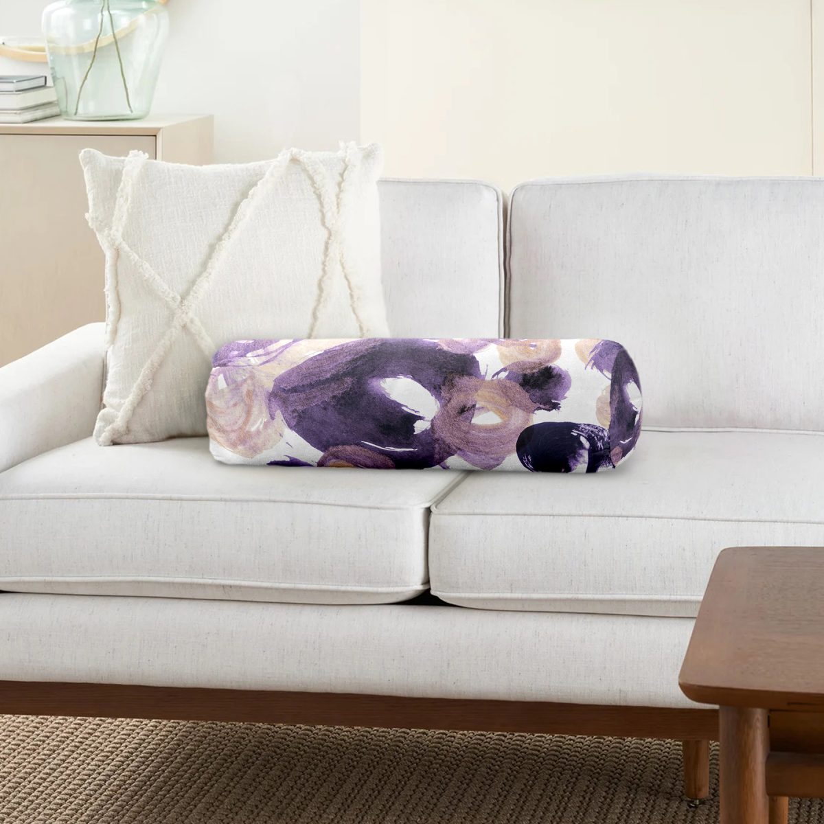 Suluboya Motifli Oval Çizimli Dekoratif İç Dolgulu Fermuarlı Çok Amaçlı Silindir Yastık Kırlent