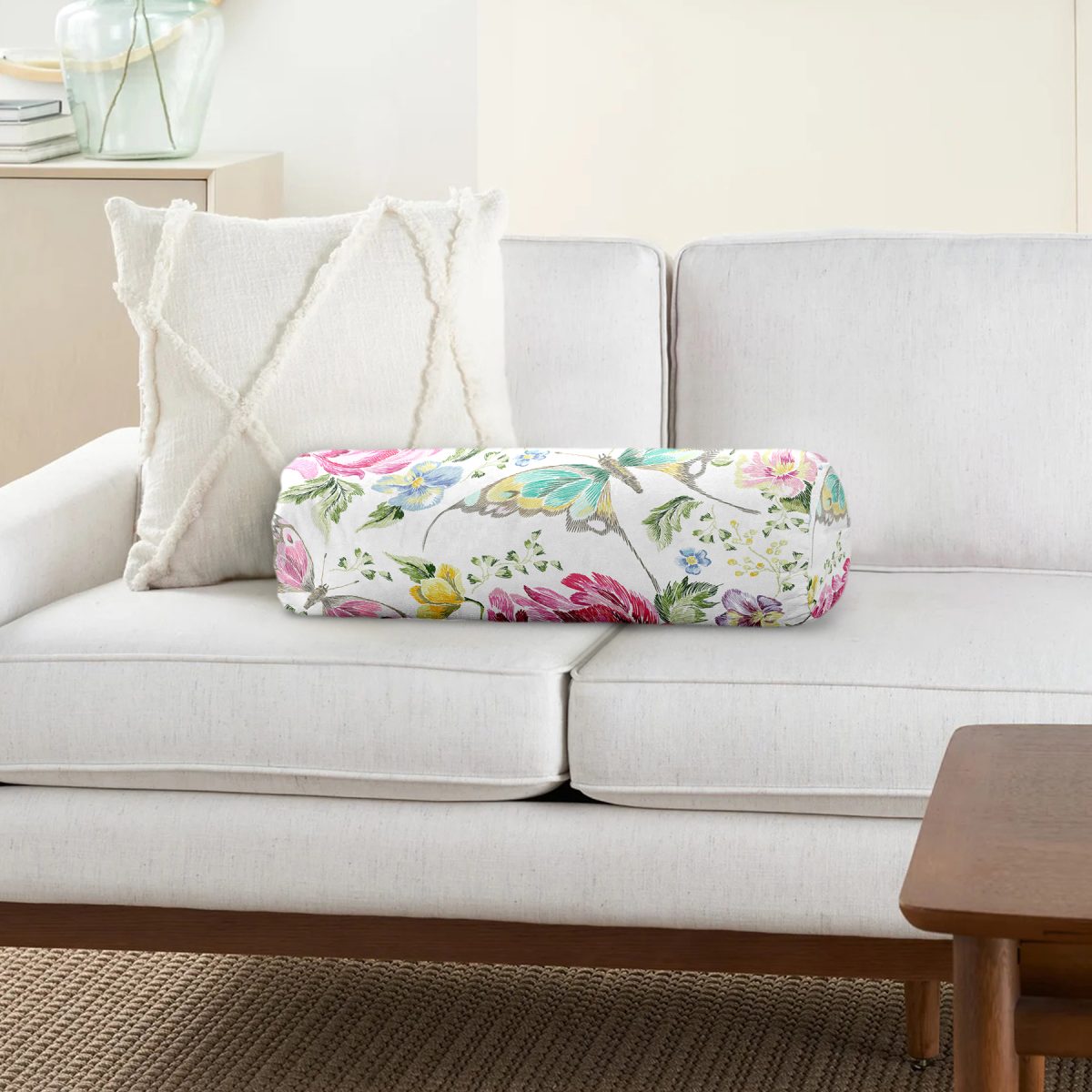 Summer Özel Seri Dijital Baskılı Modern İç Dolgulu Süet Silindir Yastık Kırlent – Bel Yastığı
