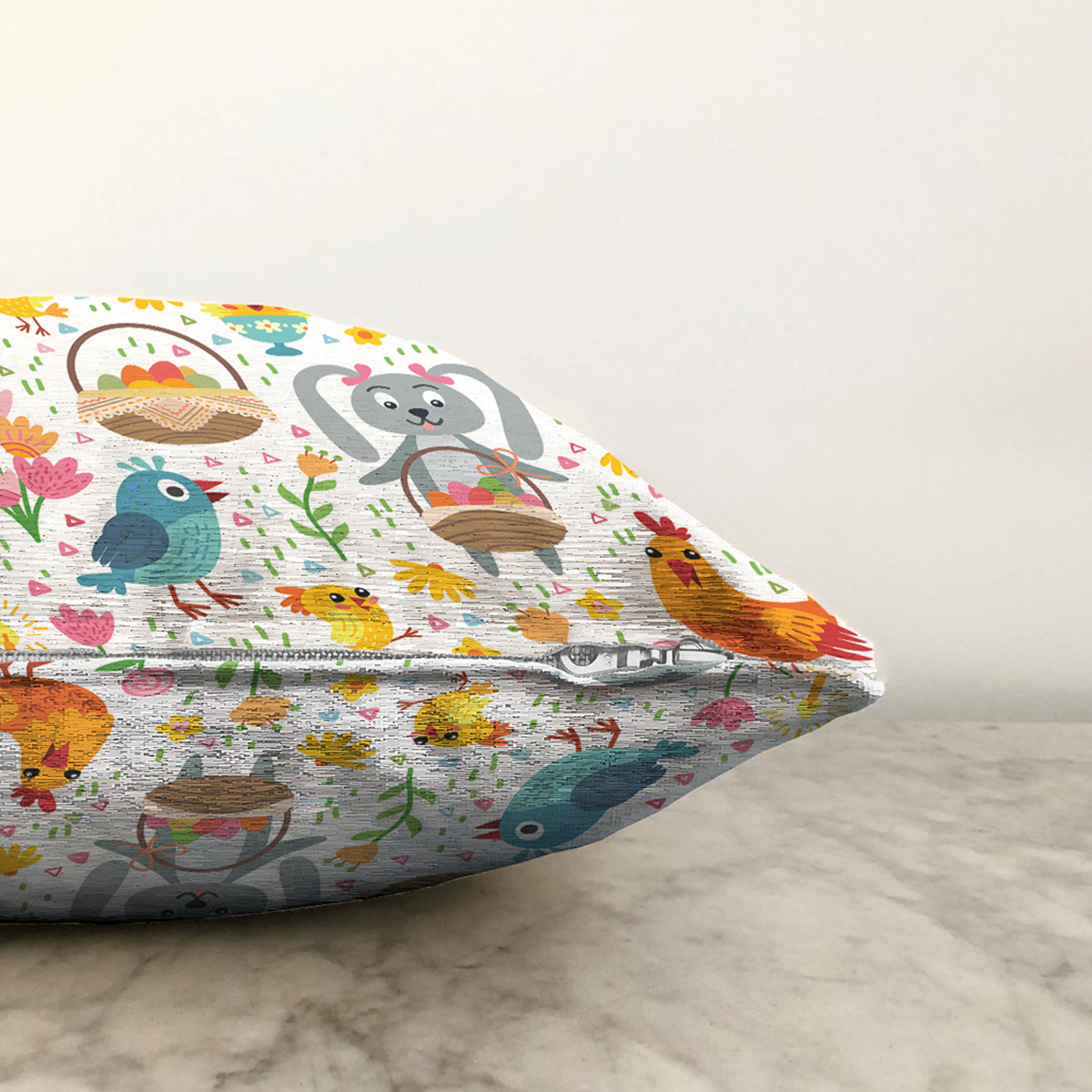 Tavşan Ve Yumurta Desenli Dijital Baskılı Özel Tasarım Modern Şönil Yastık Kırlent Kılıfı