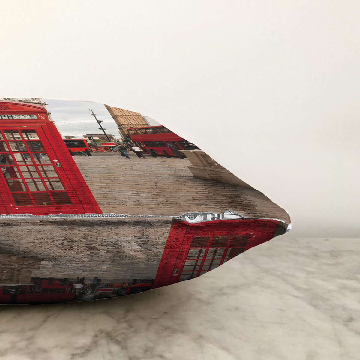 Telefon Kulübesi Motifli Dijital Baskılı Dekoratif Şönil Yastık Kırlent Kılıfı