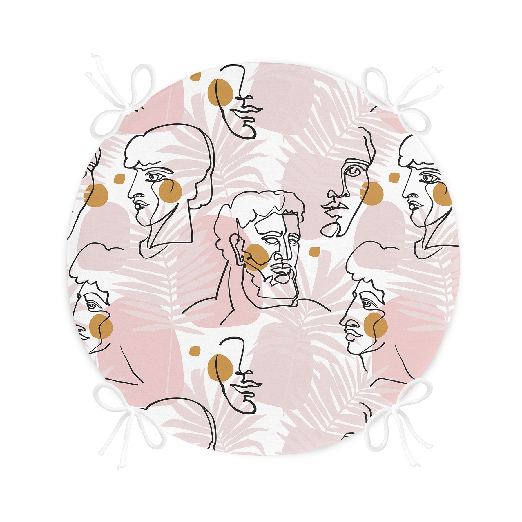 Tropik Yapraklar Üzerinde Antik Yunan Tanrısı Desenli Yuvarlak Fermuarlı Sandalye Minderi Realhomes