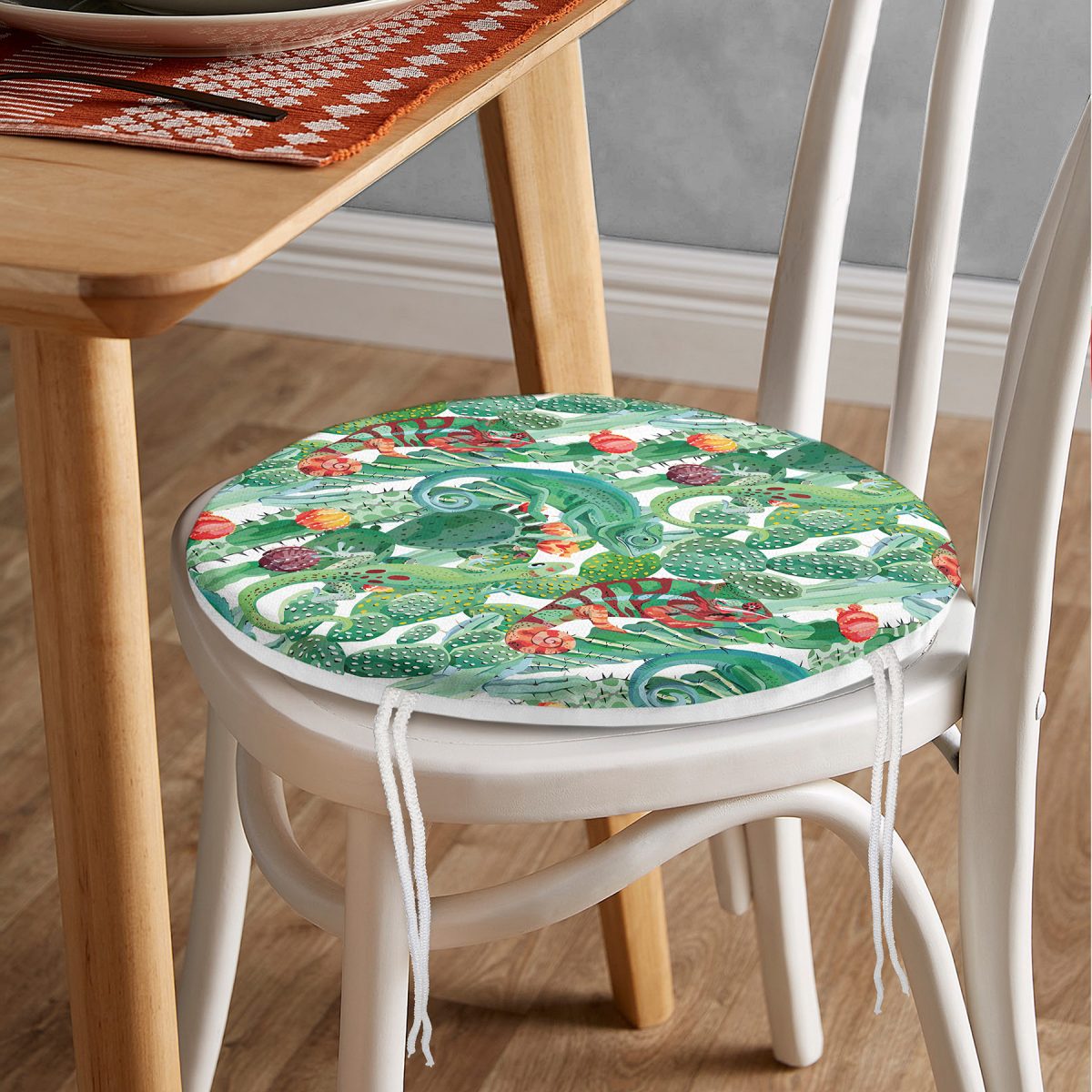 RealHomes Dijital Baskılı Yuvarlak Fermuarlı Sandalye Minderi