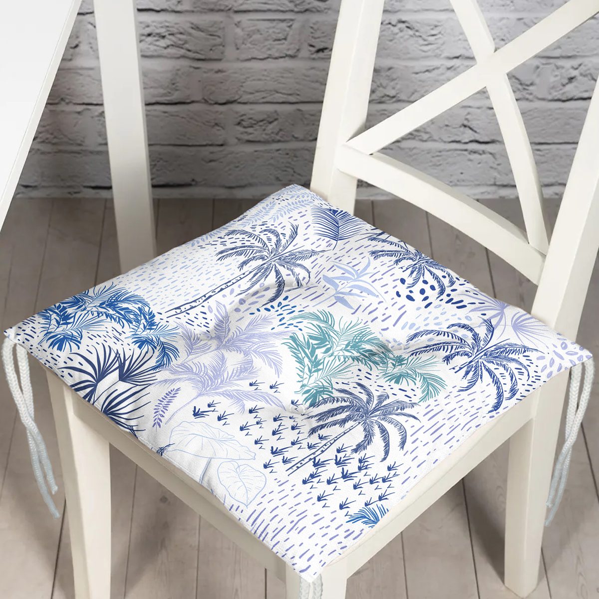 Turkuaz Palmiye Çizimli Dijital Baskılı Pofuduk Sandalye Minderi