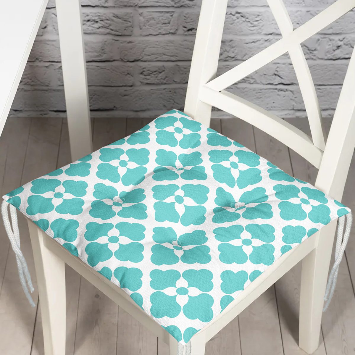 Turkuaz Renkli Yonca Desenli Dijital Baskılı Pofuduk Sandalye Minderi Realhomes