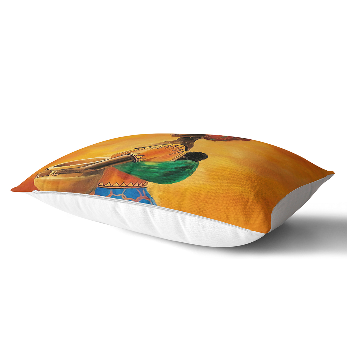 Turuncu Afrikan Women Tasarımlı Dijital Baskılı Dikdörtgen Yastık Kırlent Kılıfı