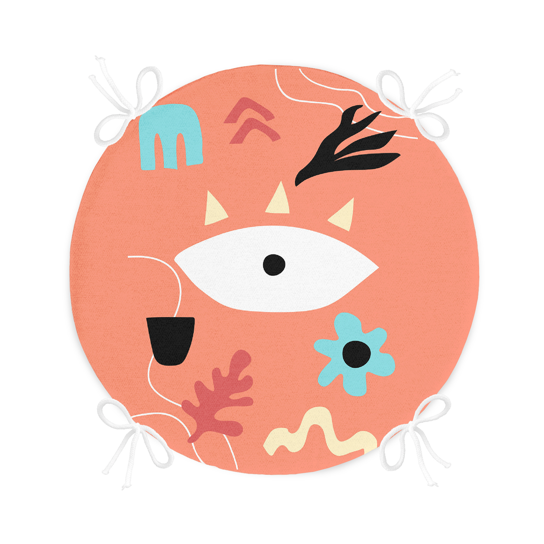 Turuncu Zemin Onedraw Motifli Yuvarlak Fermuarlı Sandalye Minderi Realhomes