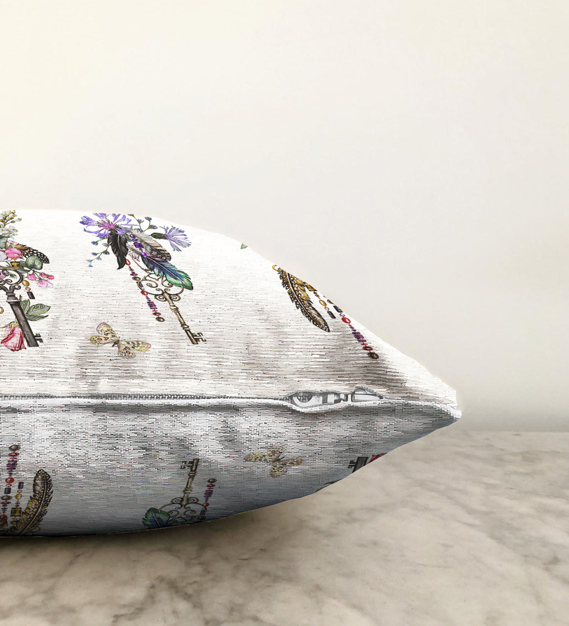 Üçlü Anahtar Çizimli Dijital Baskılı Raşel Kadife Yastık Kırlent Kılıfı