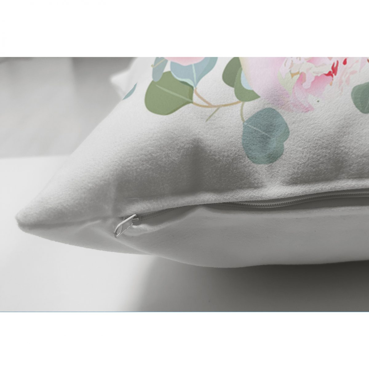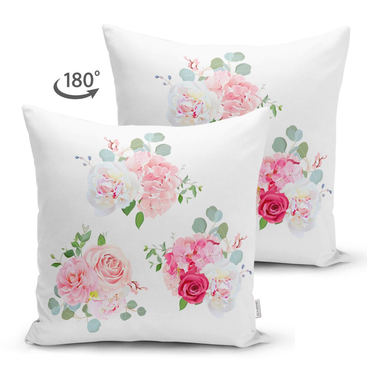 Üçlü Kavaniçe Çiçek Desenli Dijital Baskılı Çift Taraflı Süet Yastık Kırlent Kılıfı