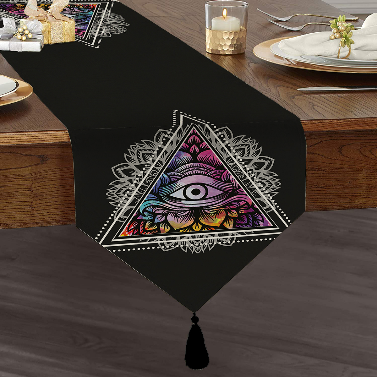 Üçüncü Göz Motifli Özel Tasarım Dijital Baskılı Püsküllü Şönil Üçgen Runner
