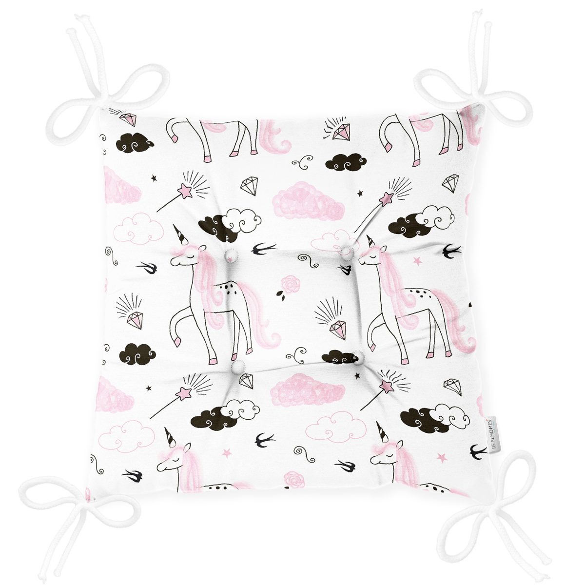 Unicorn Desenli Dijital Baskılı Özel Tasarım Modern Pofuduk Sandalye Minderi Realhomes