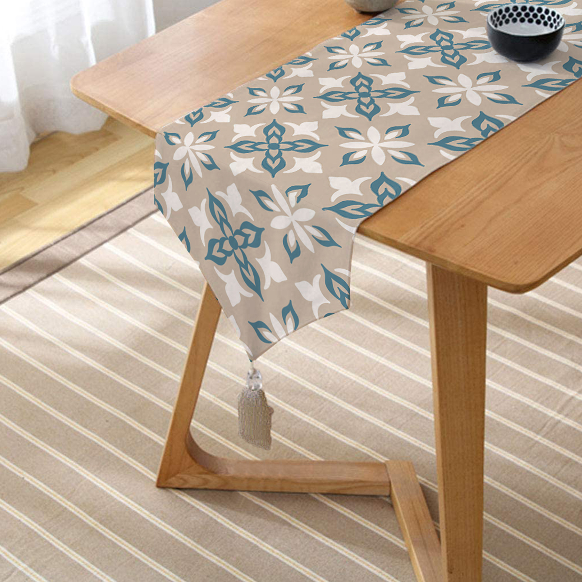 Vizon Zeminli Özel Tasarım Dijital Baskılı Dekoratif Püsküllü Şönil Üçgen Runner Realhomes