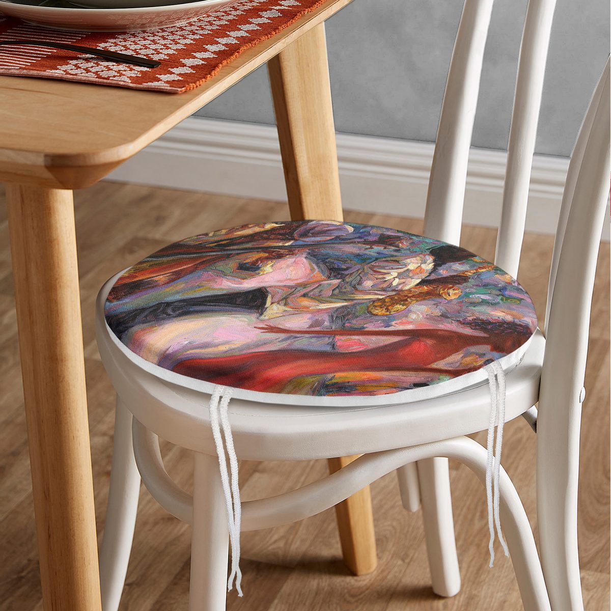 Yağlı Boya Çizimli Kadın Motifli Modern Yuvarlak Fermuarlı Sandalye Minderi Realhomes