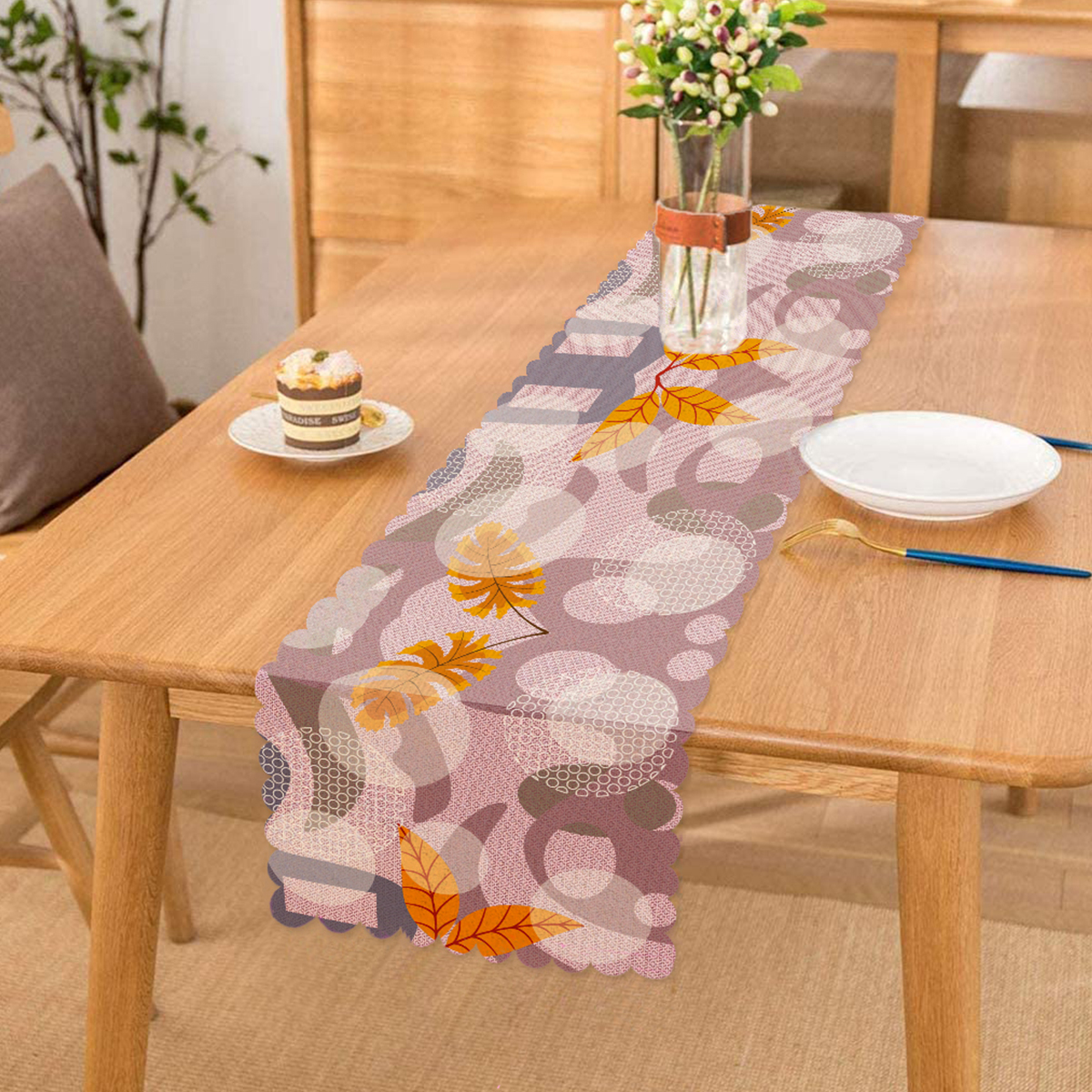 Yaprak Desenli Özel Tasarım Dijital Baskılı Modern Runner Realhomes