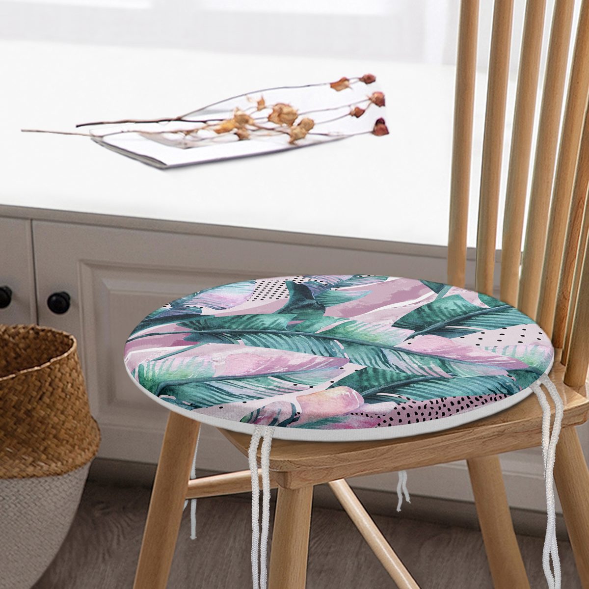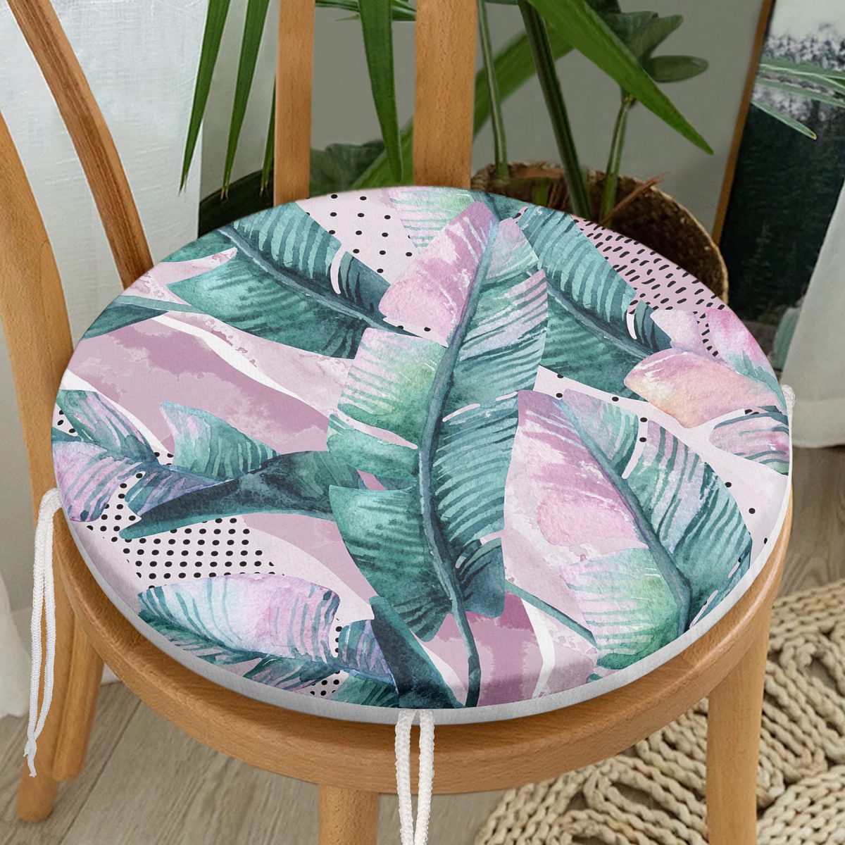 Yaz Partisi Tropik Çiçek Motifli Yuvarlak Fermuarlı Sandalye Minderi Realhomes