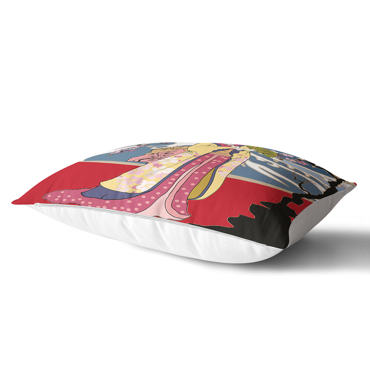 Yelpazeli Japon Kadın Motifli Dekoratif Dikdörtgen Yastık Kılıfı