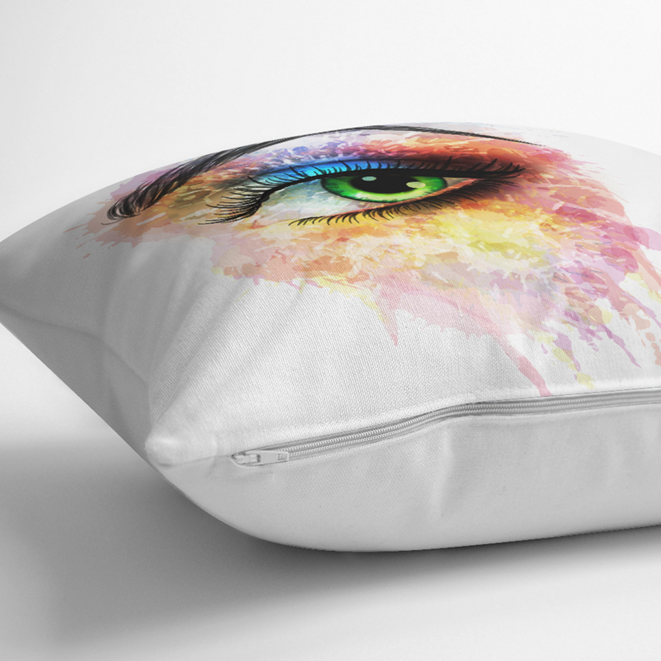 Yeşil Göz Kirpik Motifli Dekoratif Dijital Baskılı Kırlent Kılıfı Realhomes