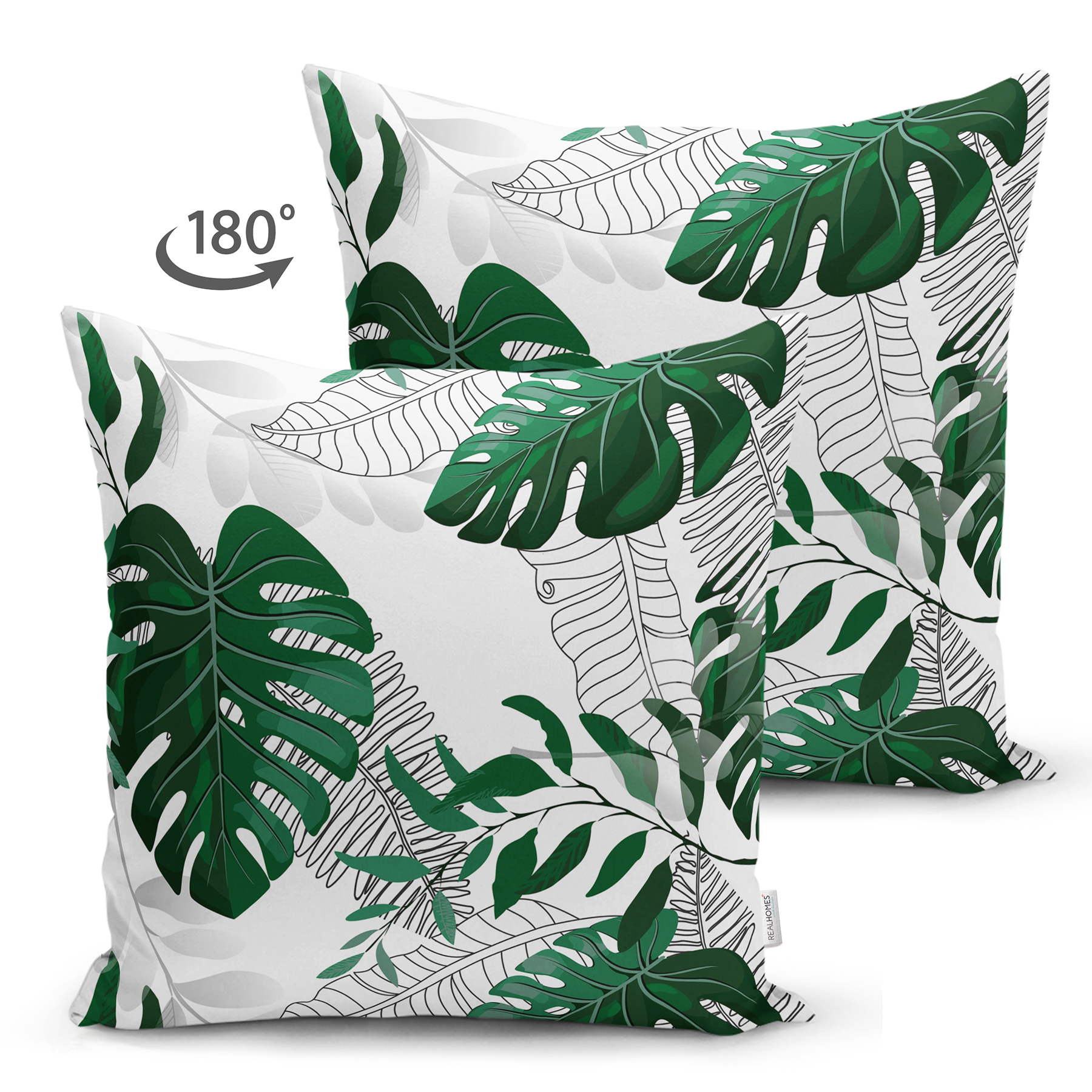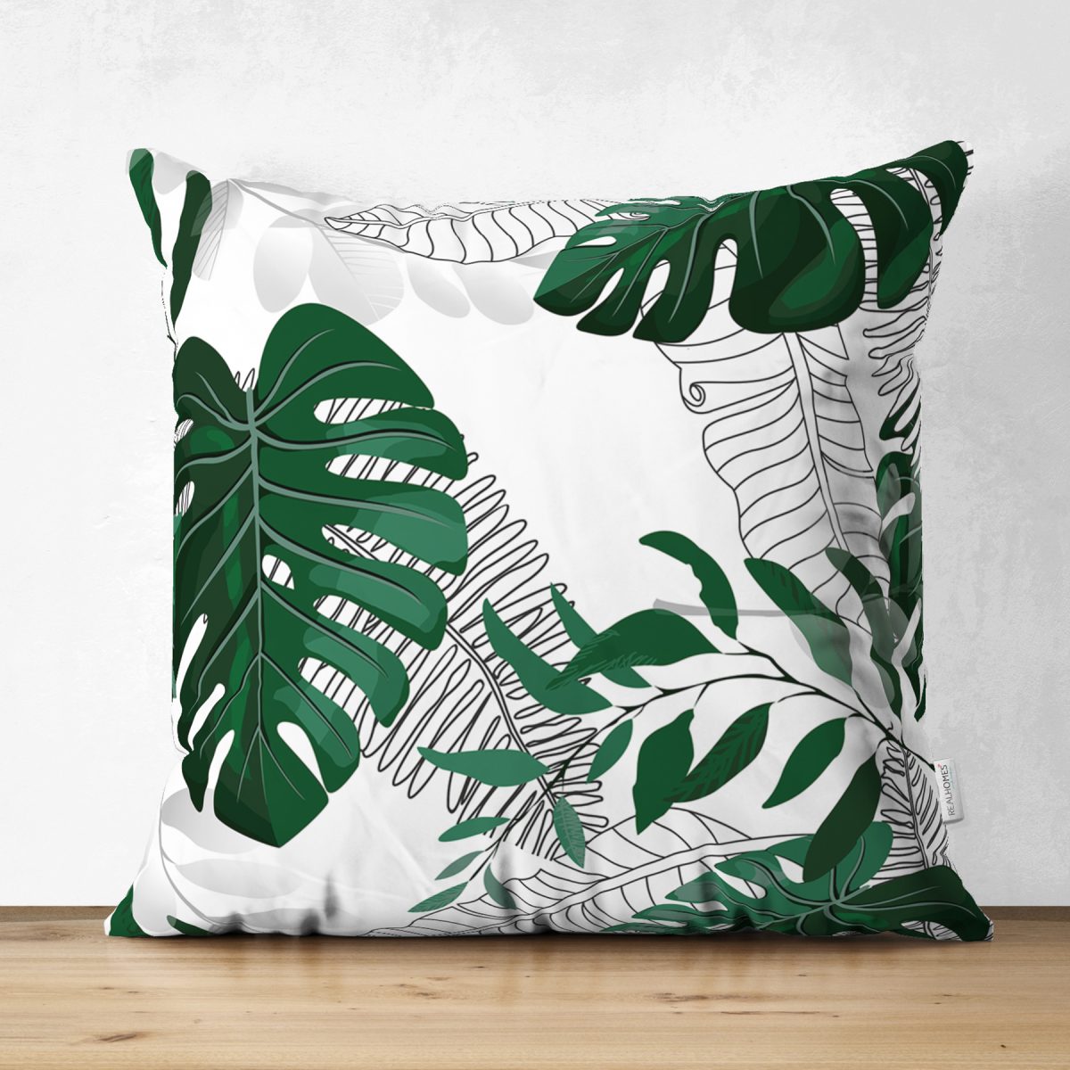 Yeşil Tropik Yaprak Modelli Dekoratif Süet Yastık Kırlent Kılıfı